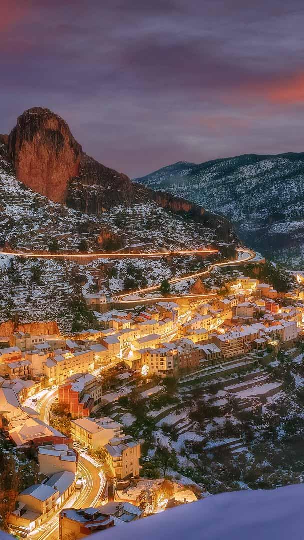 Snow might not be the first thing that pops into your mind when thinking about Spain, but thanks to its diverse landscapes from high peaks and warm beaches, Spain has it all. Featured in today"s image, the tiny village of Ayna—with a population of less than 1,000—lies in the steep valley carved by the river Mundo in the Sierra del Segura mountain range. Because of its snow-capped mountains during the winter months, the town is frequently called Manchegan Switzerland—with "Manchegan" referring to the autonomous community of Castile-La Mancha that Ayna is a part of. About 242 kilometres south of the capital, Madrid, Ayna offers a unique glimpse into Spanish village life.