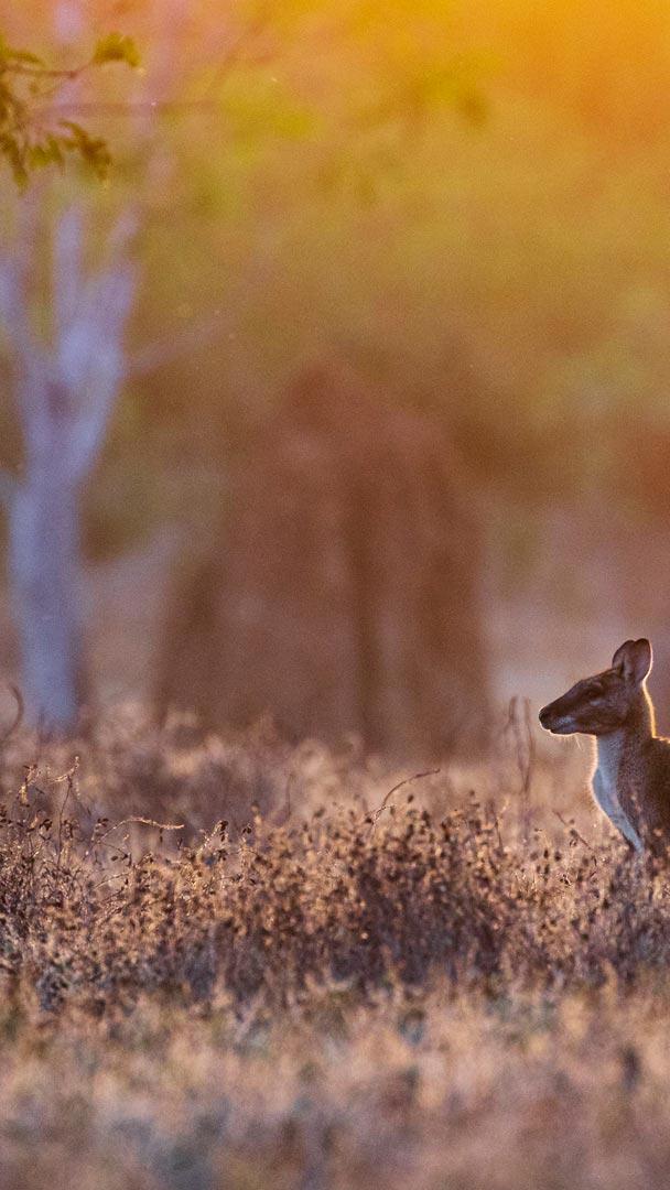Amid the hues of dawn, captured in today"s image, two wallabies stand alert in a field near the Adelaide River in Australia. These marsupials, smaller cousins of the kangaroo, are native to Australia and New Guinea. Wallabies have around 30 different species, including brush wallabies, rock-wallabies, hare-wallabies, nail-tail wallabies and swamp wallabies. These agile and sprightly mammals are herbivores, nibbling on grasses, leaves and fruits. With a height of 45 to 105 centimetres, wallabies have strong hind legs that help them take impressive leaps and serve as a defence against predators. During mating season, male wallabies engage in boxing bouts to show dominance in an attempt to grab females" attention. Social creatures, wallabies form small groups called "mobs," which provide safety and mutual grooming. Their playgrounds are forests that echo with the thudding of their hops as they navigate their home range with ease.