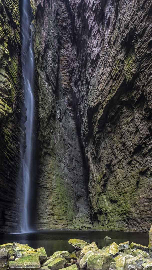 Today"s image takes us to Fumacinha Waterfall, one of the most beautiful yet least explored waterfalls in Chapada Diamantina National Park in Bahia, Brazil. With a height of approximately 100 metres, the access trail begins in the village of Baixão and is considered challenging due to its steep sections. The sound of the cascading water echoes through the canyon, providing a unique sensory experience. Surrounding the waterfall, a diverse range of wildlife—including exotic birds and small mammals—enhances the feeling of being in a pristine, untouched wilderness.