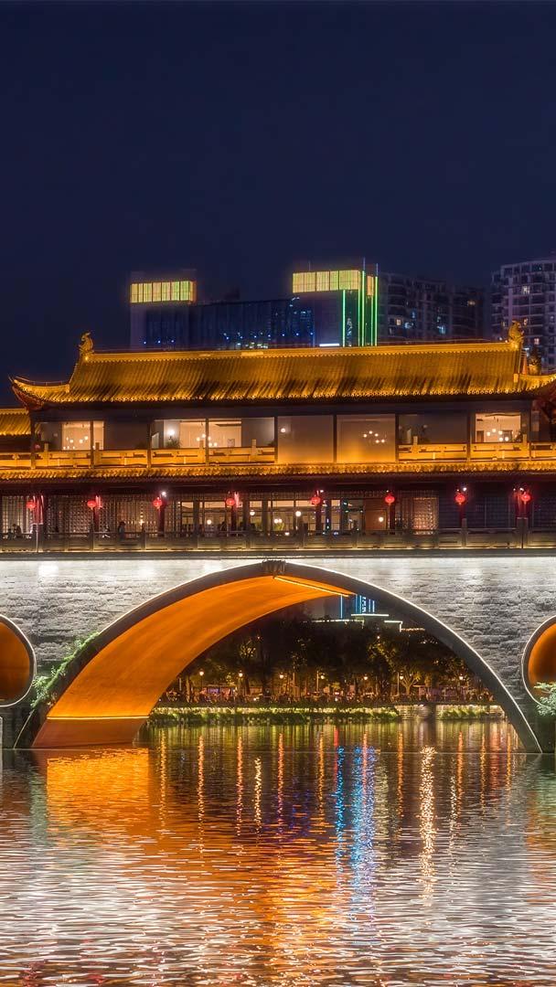 Today"s image features the Anshun Bridge in Chengdu, China. It isn"t just a crossing—it"s a cultural icon shining over the Jin River. Its name literally translates as "Bridge of Peace and Propitiousness," reflecting its role as both a practical crossing and a symbol of the city. The original bridge was built in 1746 but suffered repeated damage from floods over the centuries. The current structure, completed in 2003, preserves the architectural style of the Ming and Qing dynasties and spans 81 metres in length and 6 metres in width. The bridge features handrails with traditional floral carvings, water-beast statues on the piers and memorial archways on each side, reflecting classic Chinese architecture. It serves as a cultural landmark and a hub for tourism, featuring a restaurant on the upper level, hosting occasional cultural events and offering an illuminated night view that has become one of Chengdu"s most photographed attractions.
