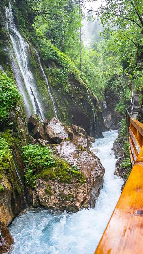 With its steep rocky walls, cascading streams and scenery that looks painted by nature itself, the Wimbachklamm near Ramsau, in Berchtesgaden National Park, ranks among Bavaria"s most stunning gorges. In today"s photo, the Wimbach carves its way through narrow rock formations over a stretch of about 200 metres, tumbling down in small waterfalls and sculpting impressive patterns into the stone over time. The colourful layers of rock reveal geological processes that date back thousands of years.