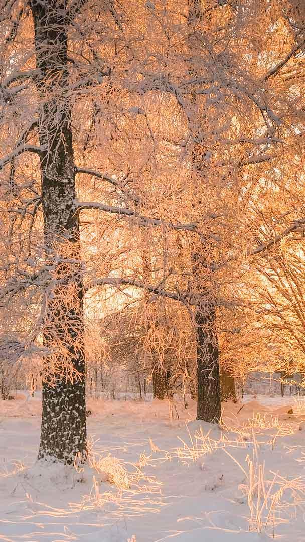 Dawn light through frosty trees, Sweden © Schon/Getty Images