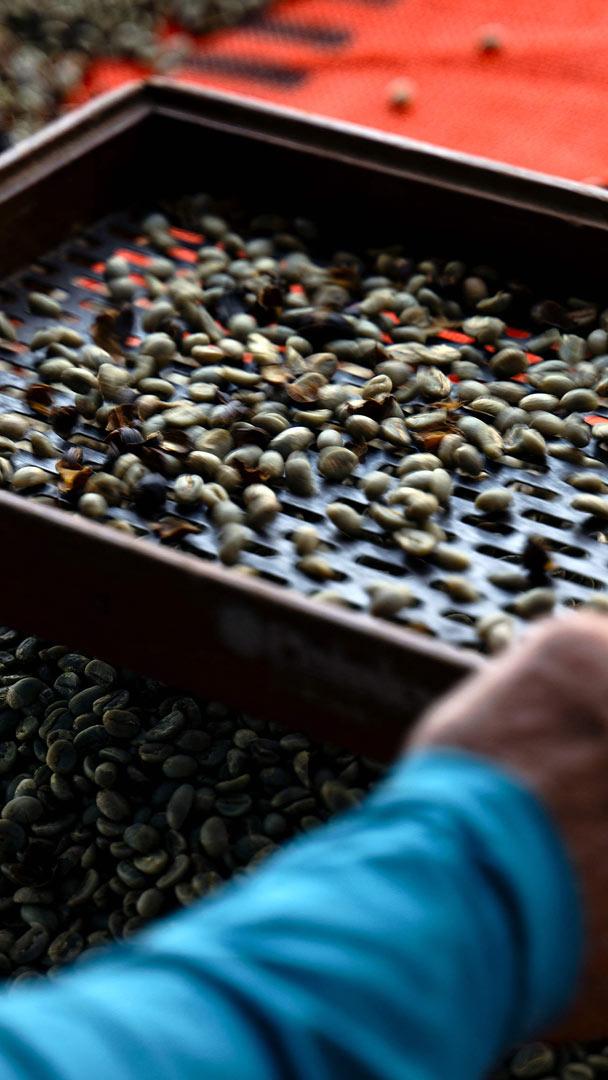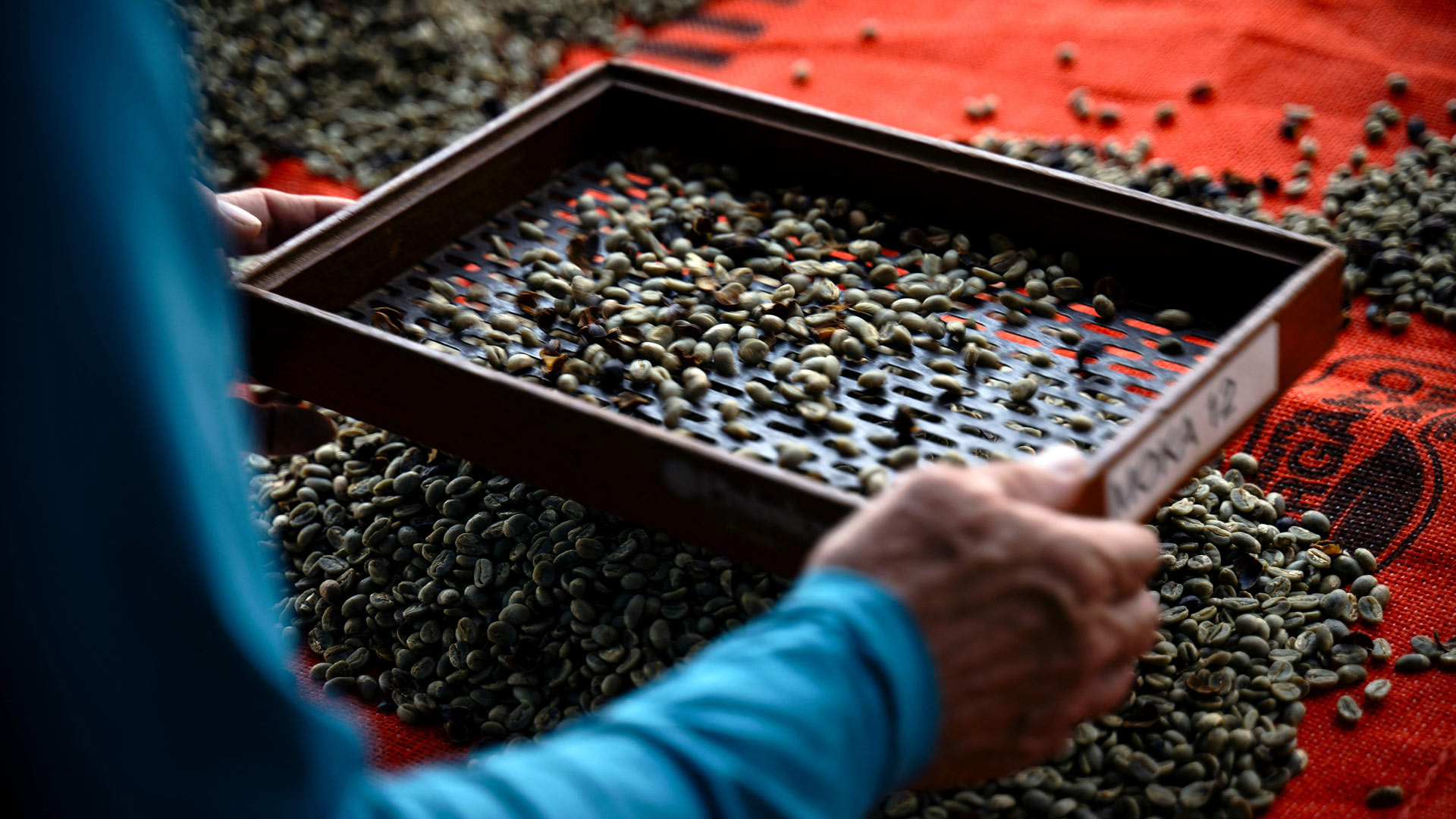 Vai um cafézinho? Um trabalhador peneira grãos de café na fazenda de café Camocim em Domingos Martins, Espírito Santo (© Carl de Souza/Getty Images)