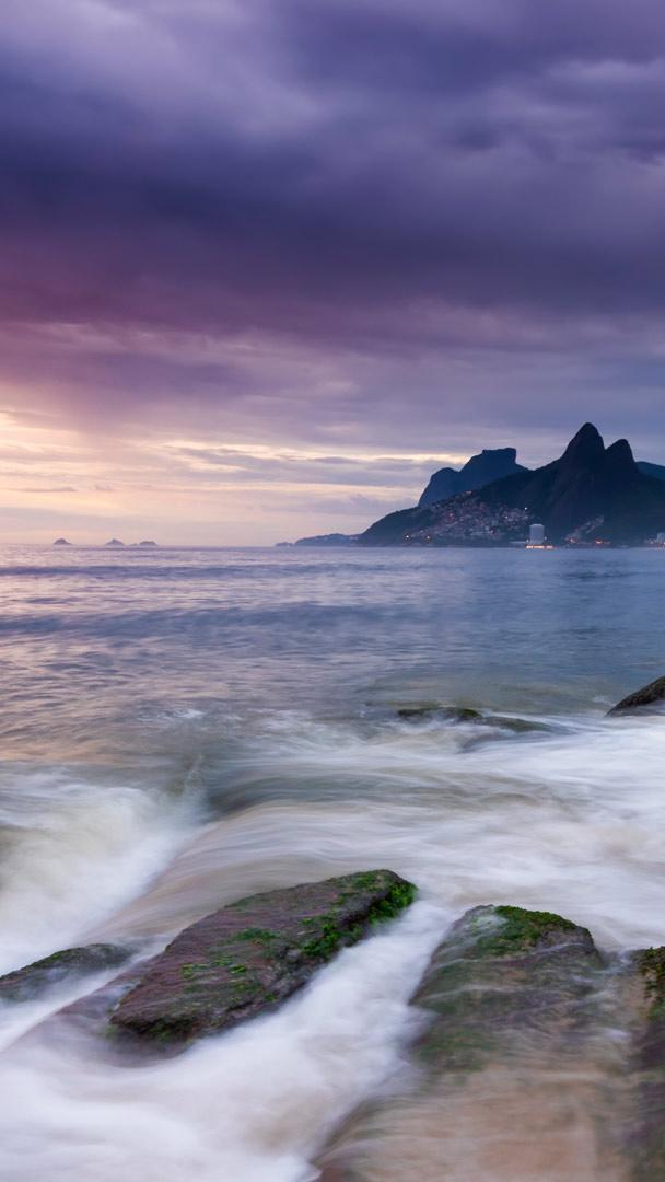 O inverno começou Pôr do sol na praia de Ipanema, Rio de Janeiro, Brasil. Vista para as praias de Ipanema e Leblon, Morro Dois Irmãos e Pedra da Gávea (© Anton Petrus/Getty Images)