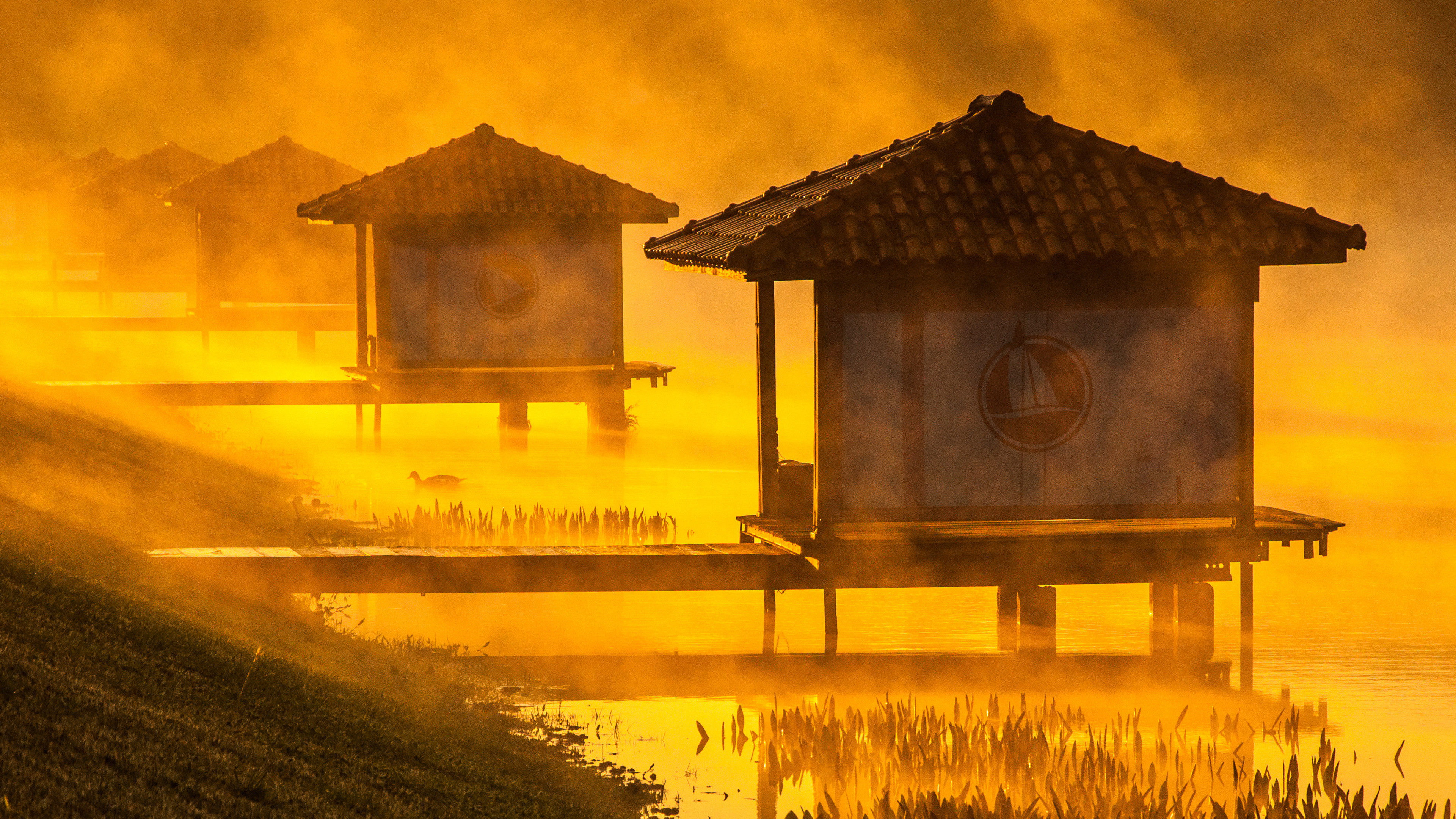 Entre névoas e pôr do sol Araraquara, São Paulo (© Dante Laurini Jr. Imagens/Getty Images)