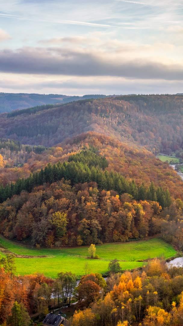 Tombeau du Géant in Bouillon, Belgium, offers a picturesque panorama for those who make the journey to see it. The Giant"s Tomb, as the hill is known in English, resembles a giant resting in the crook of the 210-kilometre-long Semois River. The name originates from a local legend about a Gallic giant, Treviso, who chose to leap off the cliffs of Rocher des Gattes rather than be captured by Roman soldiers. This vantage point, popular among hikers and road-trippers, provides a view that shifts dramatically with the seasons. During autumn, the landscape dons warm colours, as seen in today"s image, making it an ideal spot for nature enthusiasts and photographers.