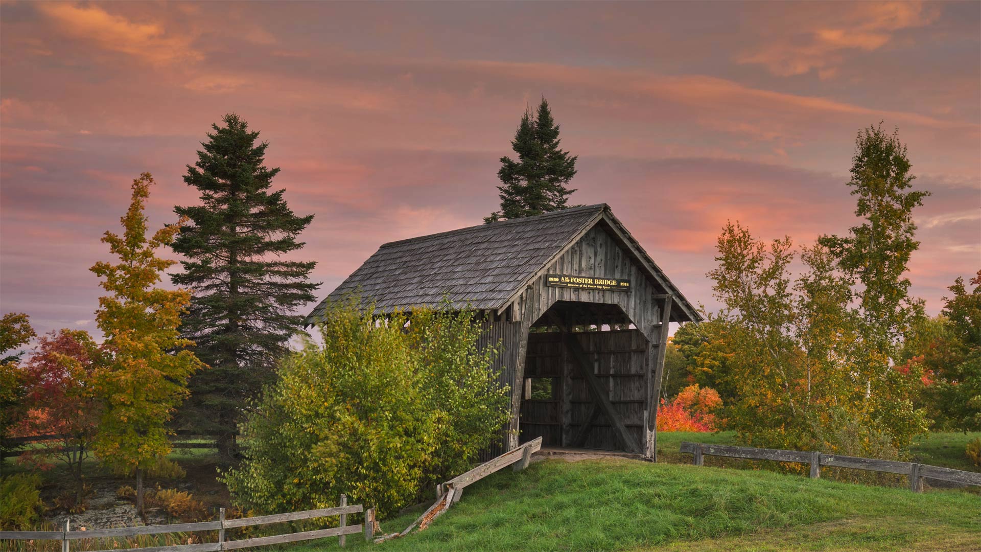 A modern recreation Foster Covered Bridge in Cabot, Vermont (© Alan Majchrowicz/Getty Images)