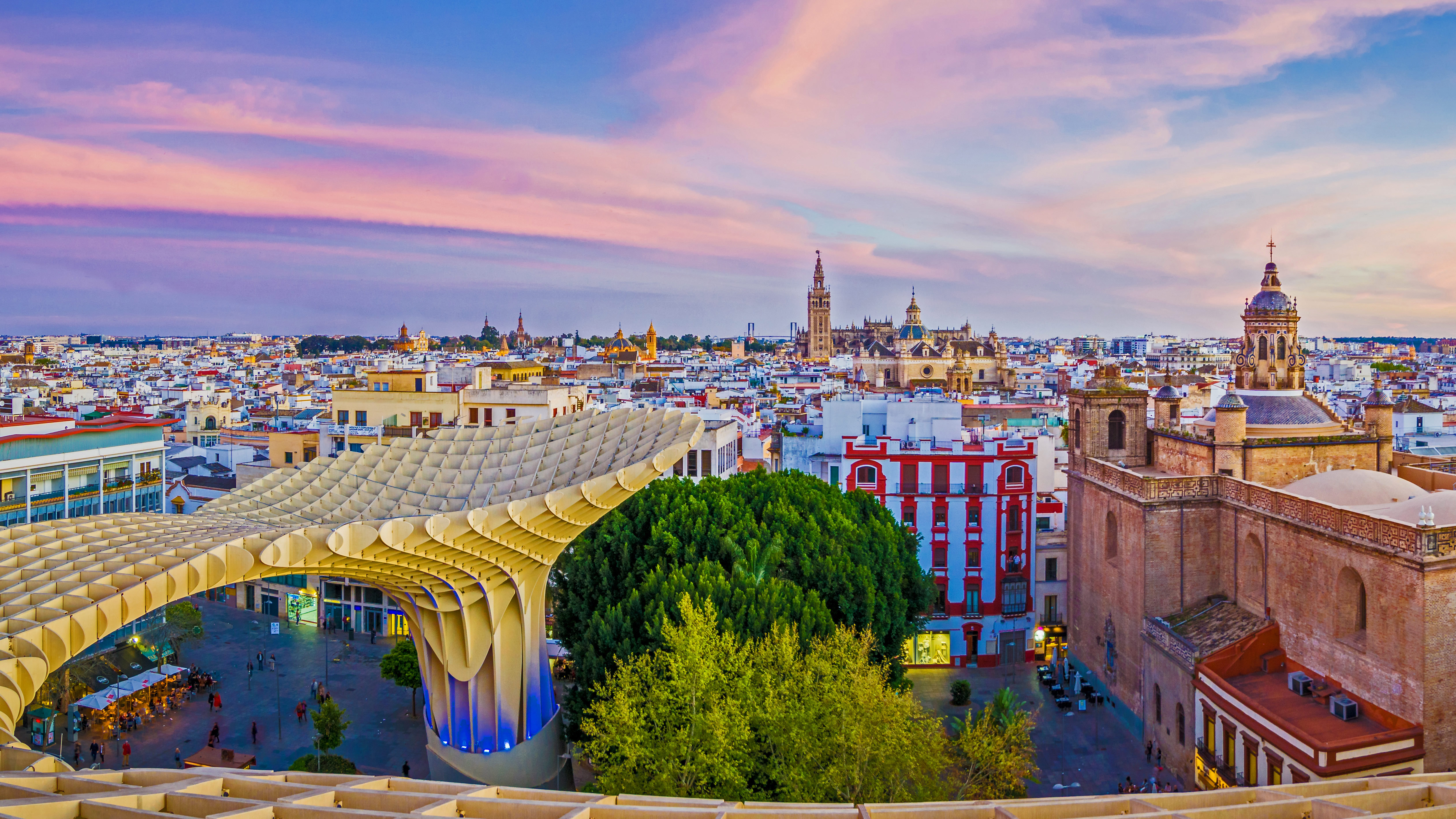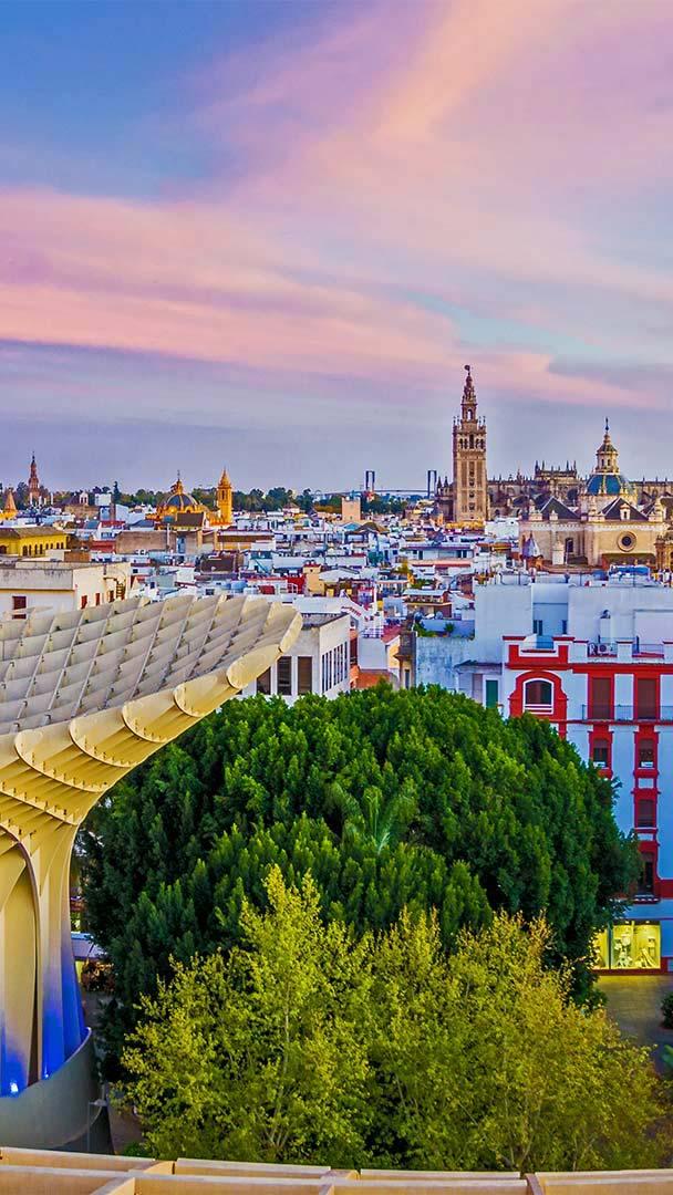 What returned to this city 500 years ago? View of the city from the Setas de Sevilla (Metropol Parasol) in Seville, Spain (© LucVi/Shutterstock)