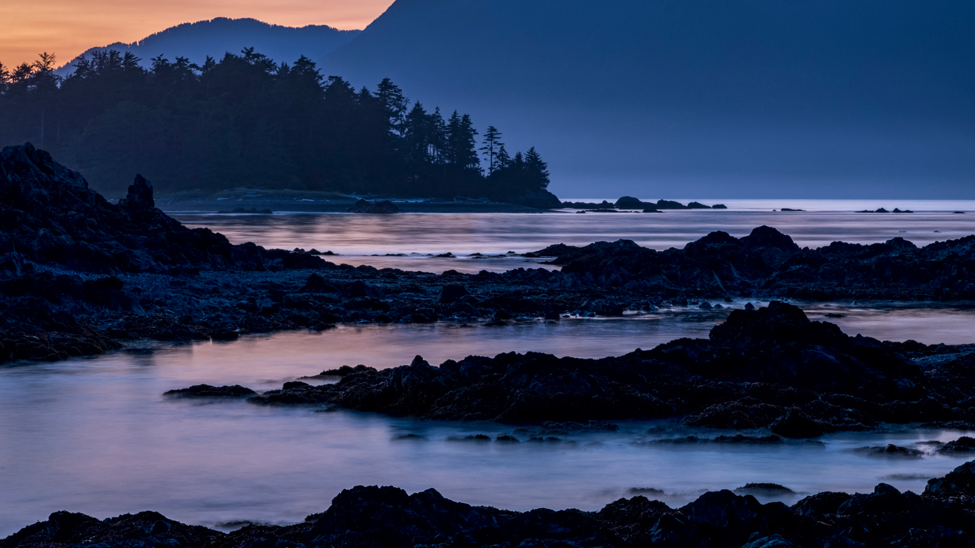 An archaelogical treasure Dusk falls over Vancouver Island viewed from an islet in Nuchatlitz Provincial Park, British Columbia (© plainpicture/Design Pics/Ron Watts)