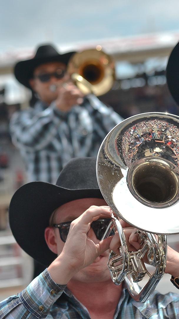 It’s time for the Calgary Stampede! Members of the Calgary Stampede marching band in action, during the Calgary Stampede 2016 (© Artur Widak/NurPhoto/Getty Images)
