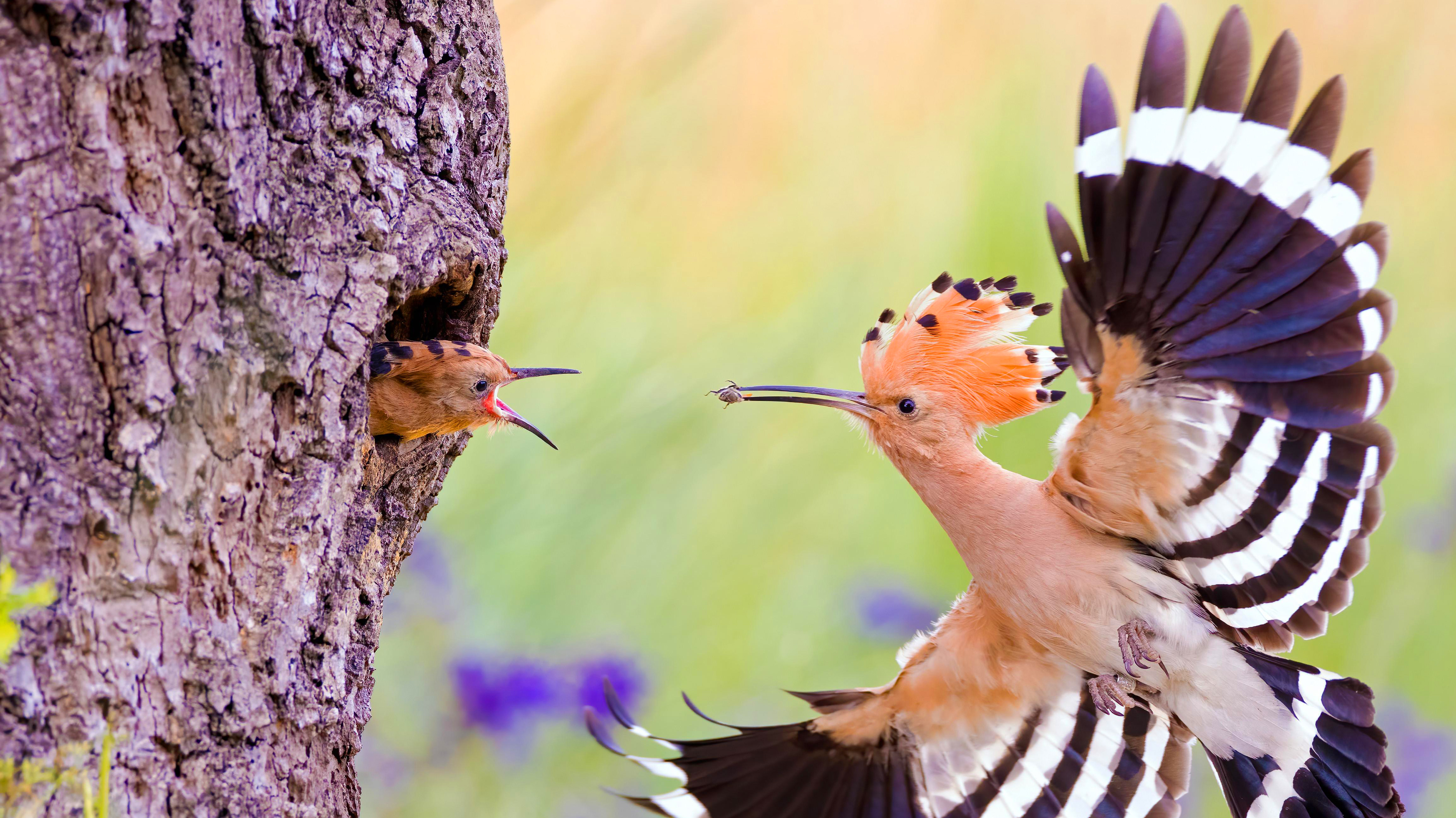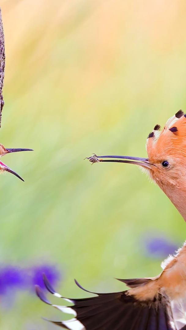 喂养时间到了 正在投喂幼鸟的戴胜鸟,德国 (© Slawek Staszczuk/Alamy)