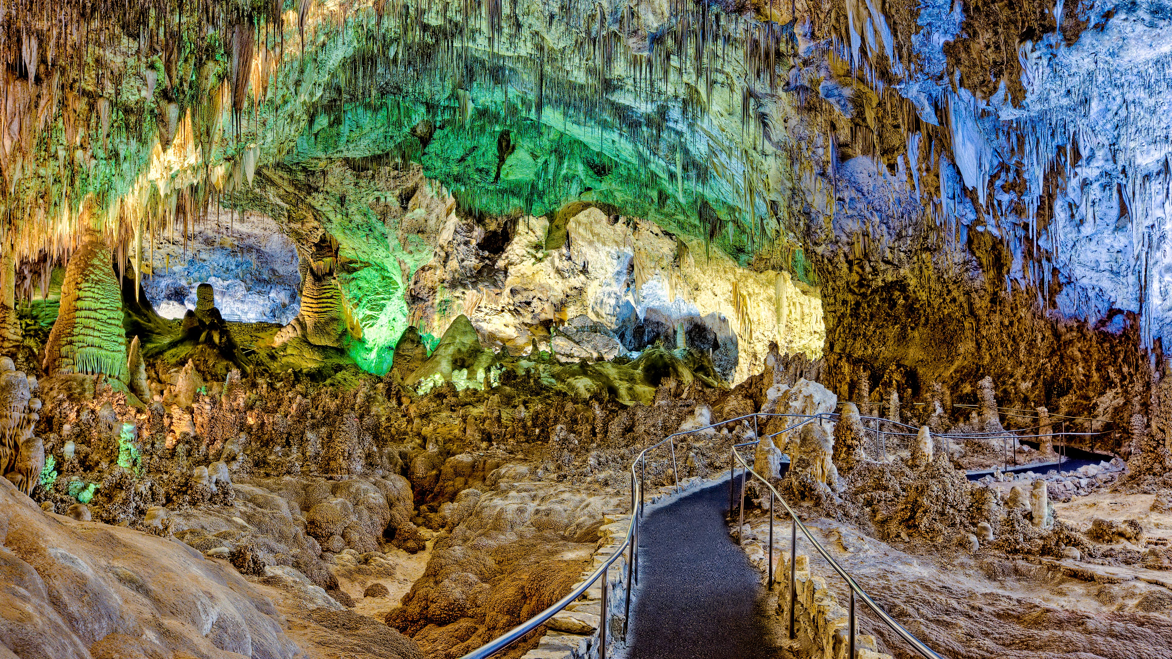 “深渊”探险 通往大房间的走道,卡尔斯巴德洞穴国家公园,新墨西哥州 (© Doug Meek/Getty Images)