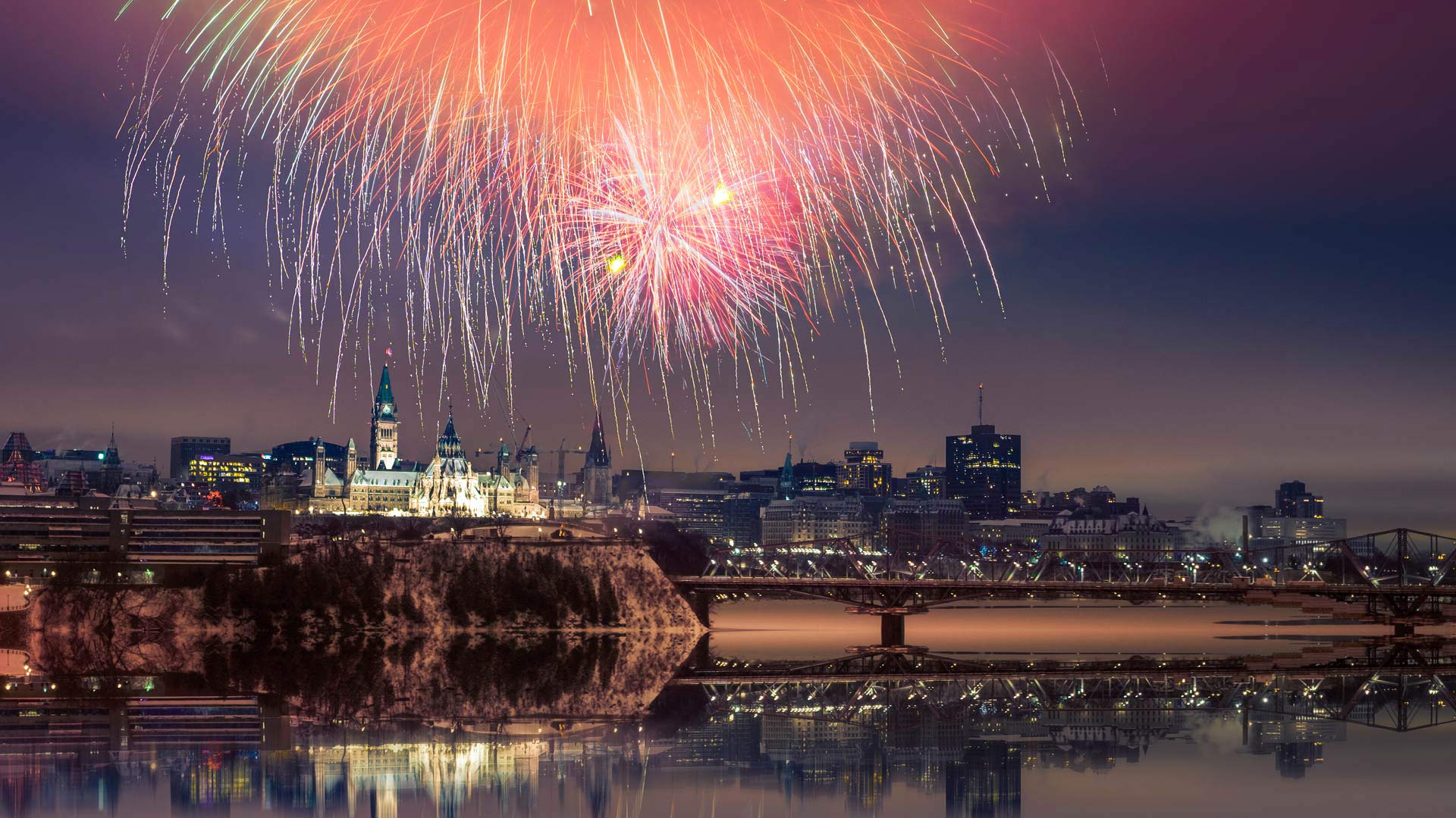 新年快乐! 国会山上空的烟花,渥太华,加拿大 (© naibank/Getty Images)