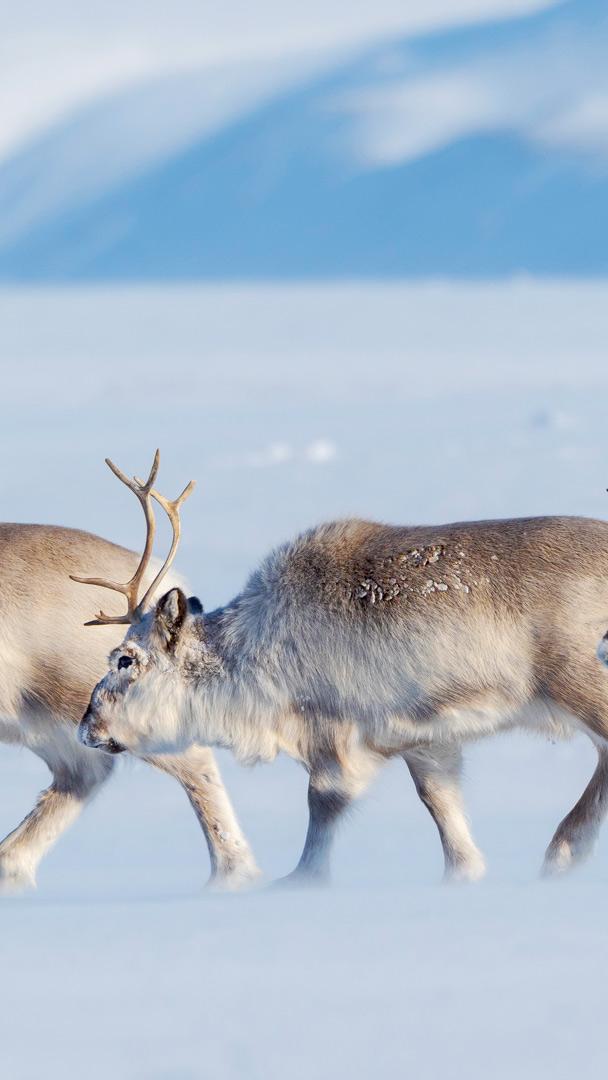 Die Spitzbergen-Rentiere, die man im atemberaubenden Nationalpark Van Mijenfjord in Norwegen beobachten kann, sind bemerkenswerte arktische Kreaturen, die sich an das Leben in extremer Kälte angepasst haben. Die kurzbeinigen und gedrungenen Tiere haben ein dickes Winterfell, das sie vor der Kälte schützt. Hier im hohen Norden Europas, fast am Polarkreis, trotzen diese zähen Tiere den extremen Bedingungen. Ihre Anpassungsfähigkeit und Widerstandskraft sind beeindruckend und erinnern uns daran, wie wichtig es ist, die Natur zu schützen und zu bewahren.