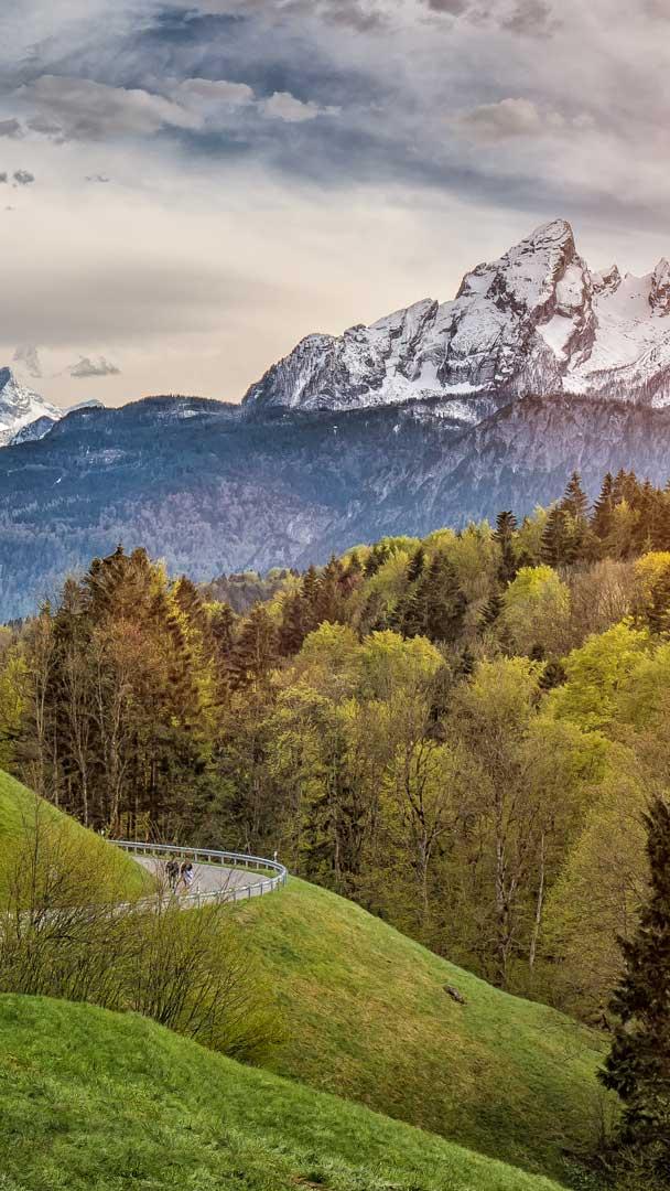 Majestätisch thront die Wallfahrtskirche Maria Gern, die auf unserem heutigen Bild zu sehen ist, über dem Tal, ihren Blick auf das imposante Watzmann-Massiv gerichtet. Mit ihren charakteristischen Zwiebeltürmen ist sie der Inbegriff wahrer bayerischer Postkartenidylle. Bereits seit Jahrhunderten zieht die Kirche Pilger an, die Ruhe und spirituelle Inspiration suchen. Aufgrund der atemberaubenden Kulisse und langjähriger Geschichte ist sie auch heute noch ein sehr beliebtes Ausflugsziel im Berchtesgadener Land.