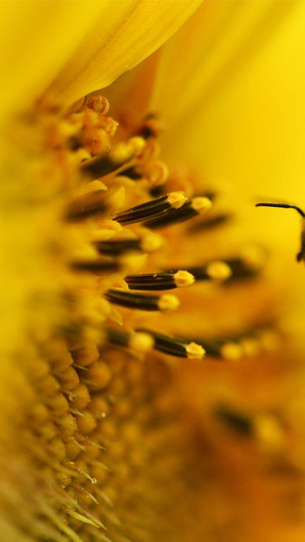 Arbeiten Bienen am 1. Mai? Biene im Sonnenblumenfeld bei Fresdorf (© Ralf Hirschberger/dpa-Zentralbild/dpa/Alamy Live News)
