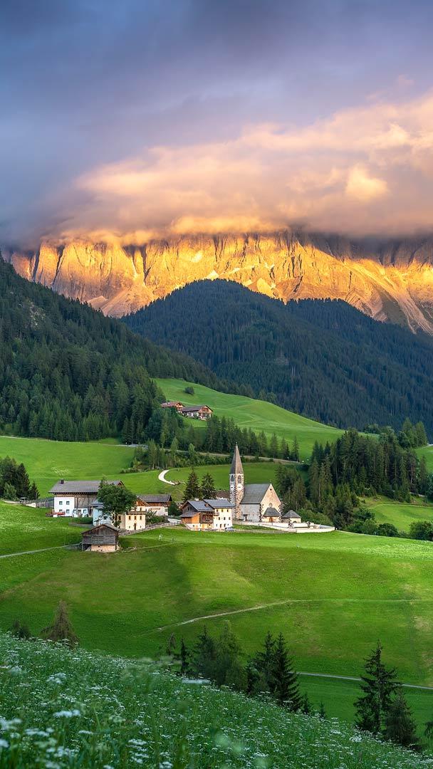 Auf dem heutigen Bild sieht man das Dorf Santa Maddalena in den Dolomiten, Italien. Dieses malerische Dorf liegt im Herzen des Villnößtals in Südtirol, umgeben von den majestätischen Gipfeln der Dolomiten, die zum UNESCO-Weltnaturerbe gehören. Mit seinen Holzhäusern, der Kirche mit dem spitzen Glockenturm und den grünen Wiesen vor dramatischer Bergkulisse wirkt Santa Maddalena wie eine Postkarte aus den Alpen. Es ist ein ideales Reiseziel für Wanderer, Fotografen und Naturliebhaber, die Ruhe und unberührte Schönheit suchen.