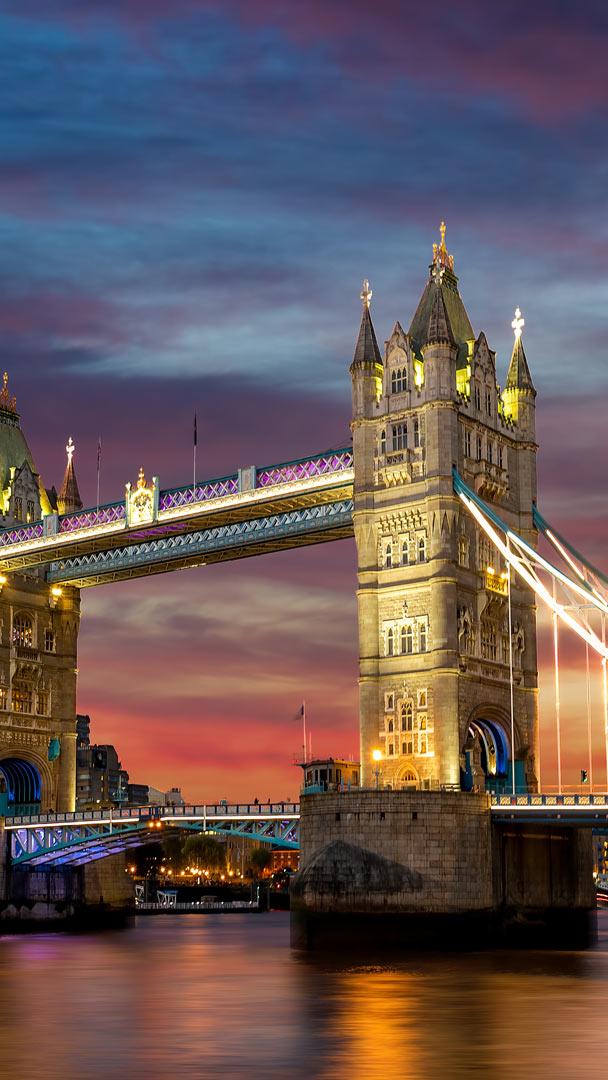 Haben Sie Lust auf ein Brückenerlebnis der besonderen Art? Die Tower Bridge in London ist mehr als nur eine Brücke: Sie ist eines der bekanntesten Wahrzeichen der englischen Hauptstadt und ein beliebtes Fotomotiv für Besucher aus aller Welt. Seit über 130 Jahren öffnet sie sich wie ein riesiges Tor für Schiffe und begeistert mit ihrem Design und ihrer Geschichte. Ihre Türme im neugotischen Stil, die blau-weiße Farbgebung und die beweglichen Brückenteile machen sie einzigartig. Früher wurde sie mit Dampf betrieben, heute übernehmen diese Aufgabe moderne Systeme. Wer mutig ist, kann über die Glaswege in 42 Metern Höhe laufen und die Themse von oben sehen!