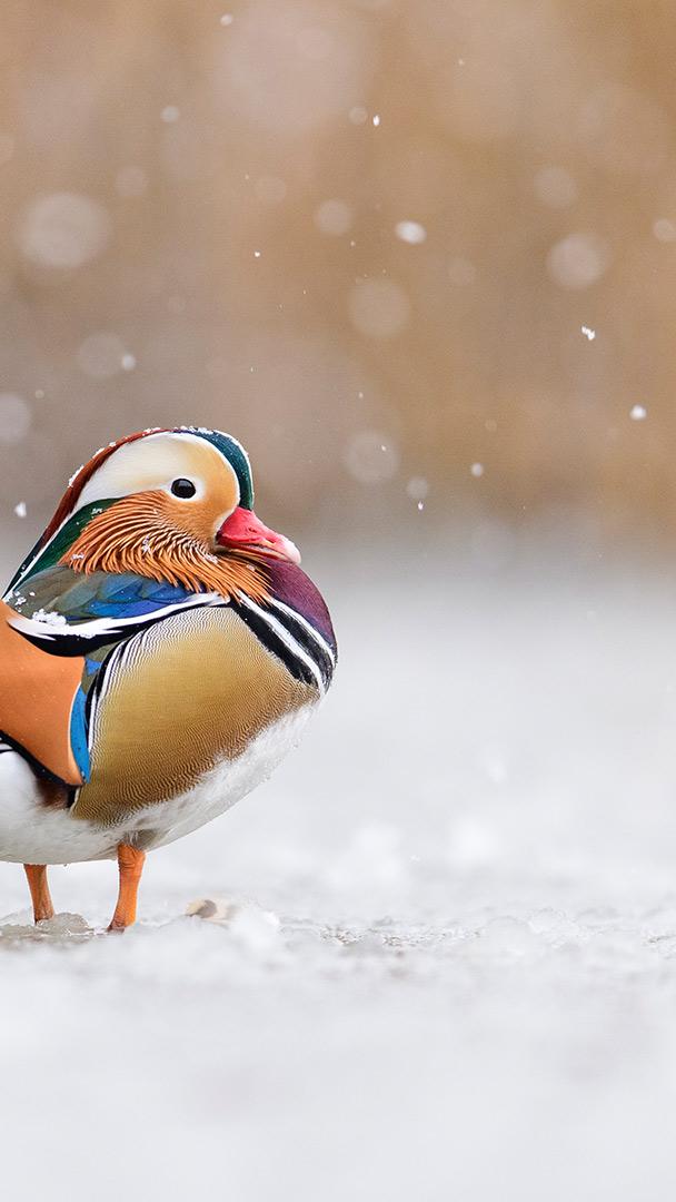Ein farbenfroher Vogel Mandarinente, Richmond Park, London, UK (© Oscar Dewhurst/Minden Pictures)
