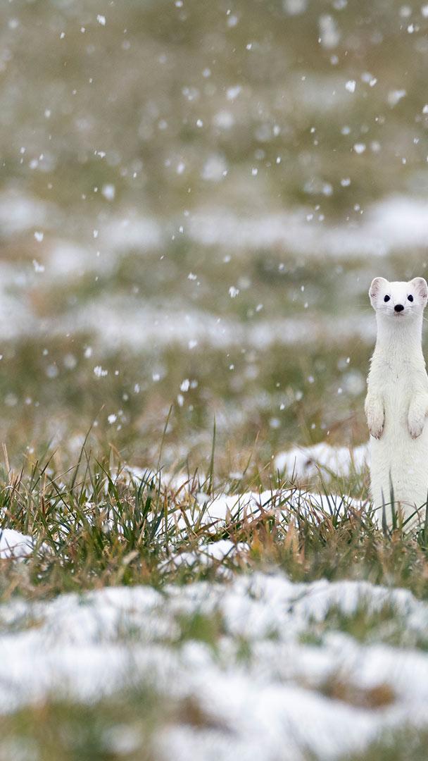Gut getarnt jagt es sich besser Hermelin im Winterfell, Oberbayern, Bayern (© Konrad Wothe/Minden)
