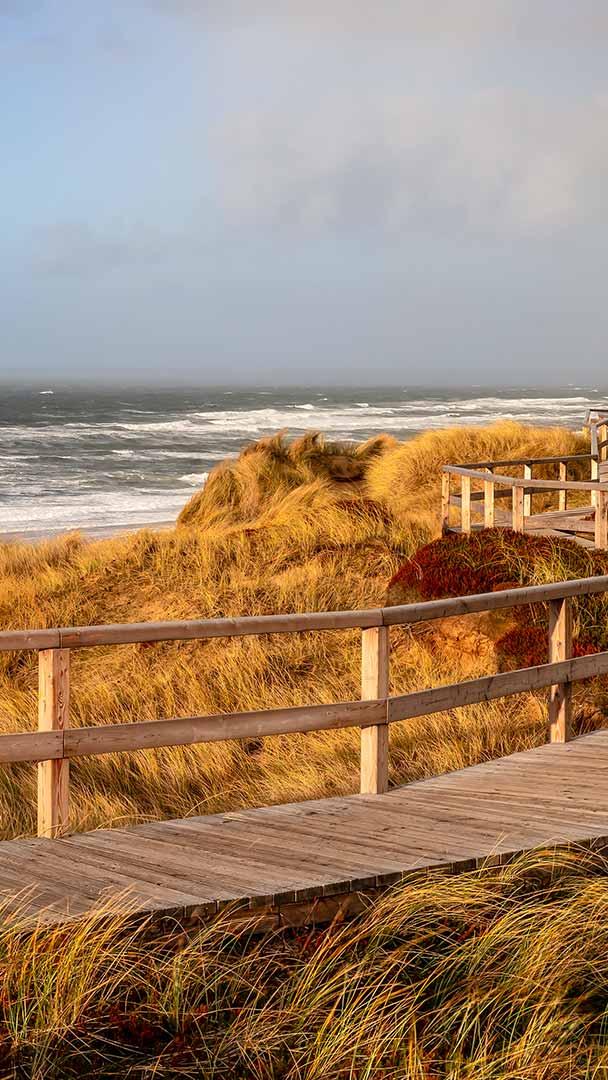 Nordfrieslands größte Insel Holzbohlenweg in den Dünen bei Wenningstedt, Sylt, Schleswig-Holstein (© Achim Thomae/Getty Images)