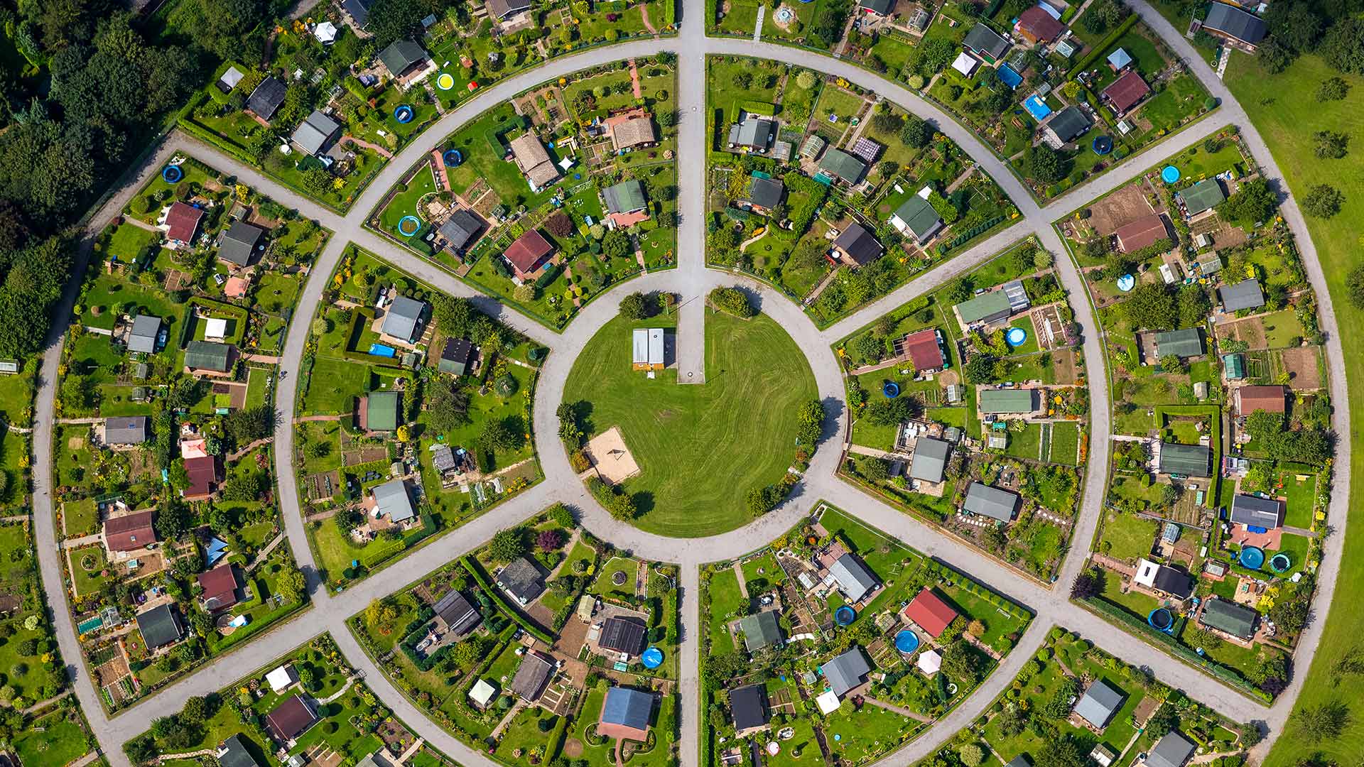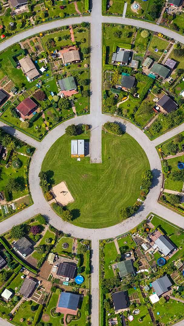 In luftiger Höhe Luftaufnahme von Kleingärten, Kamp-Lintfort, Nordrhein-Westfalen, (© Hans Blossey/Alamy Stock Photo)