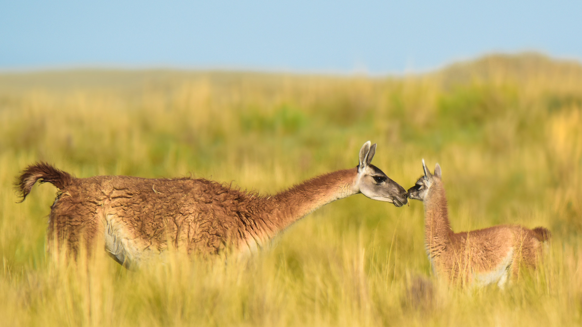 Mütter, die ewige Quelle der Liebe und des Trostes, tragen vielleicht kein Heldenkostüm, doch sind sie die unangefochtenen Heldinnen unseres Lebens. Der Muttertag gibt uns die Gelegenheit, die Wärme zu genießen, die sie großzügig spenden, wie man es auf dem heutigen Bild sehen kann. Hier ist eine Guanako-Mutter mit ihrem Baby, ein Verwandter des Lamas, in den weiten Graslandschaften von der Provinz La Pampa in Argentinien. Wie alle Mütter beschützt das Guanako-Weibchen ihr Kind, auch unter dem Namen „Chulengo“ bekannt, mit aller Kraft.