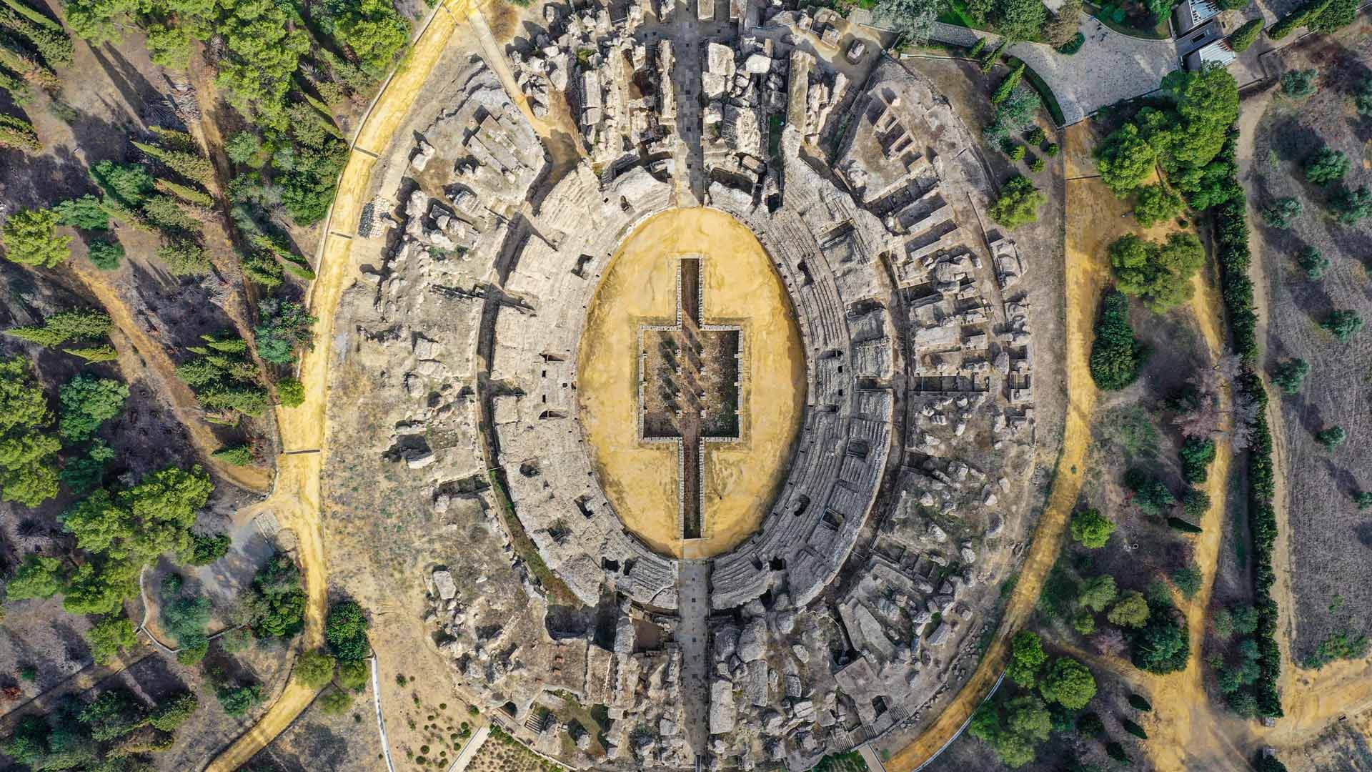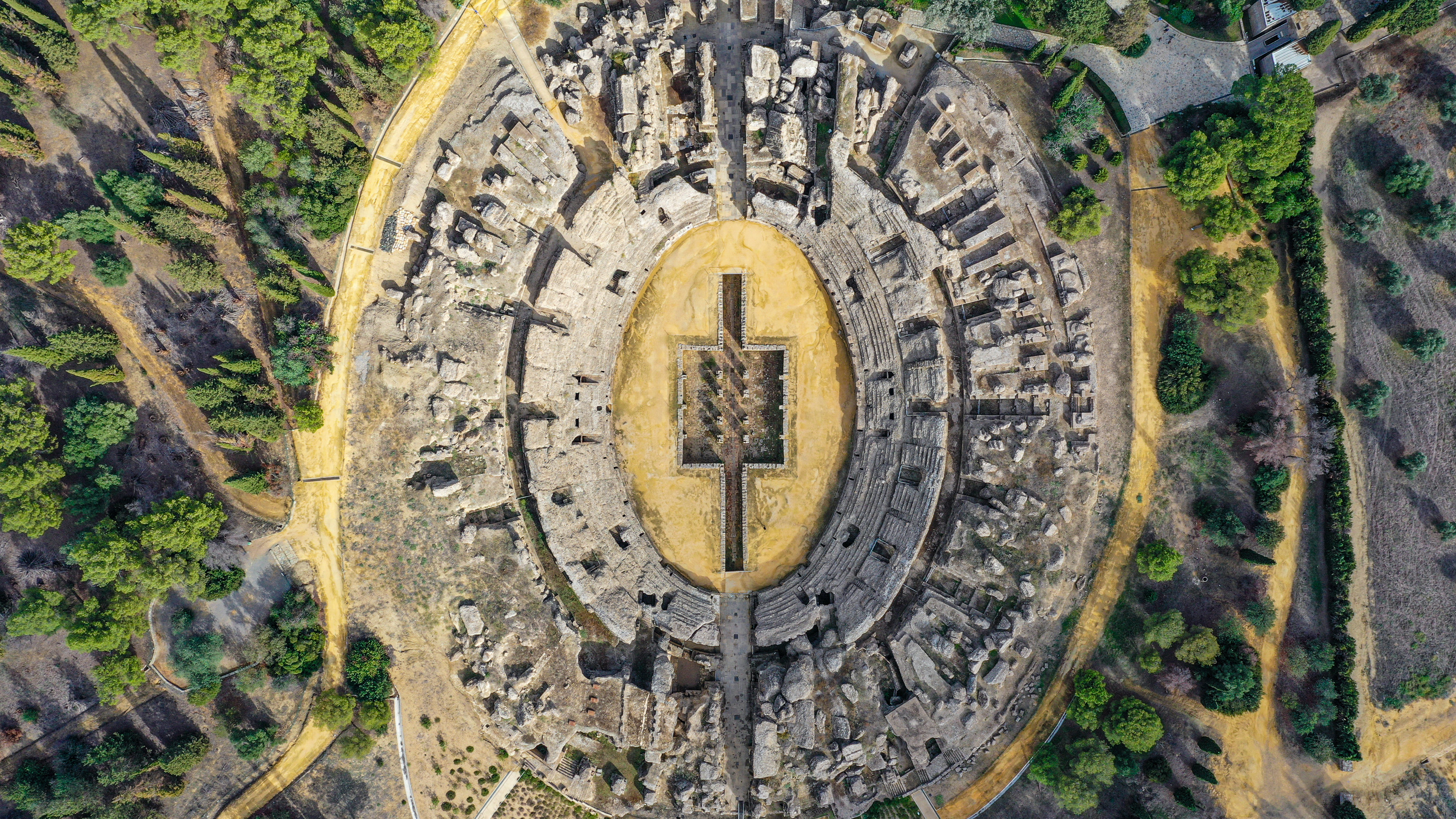 Itálica, antigua ciudad romana en Santiponce, Andalucía, España © Moses Palermo/Amazing Aerial Agency