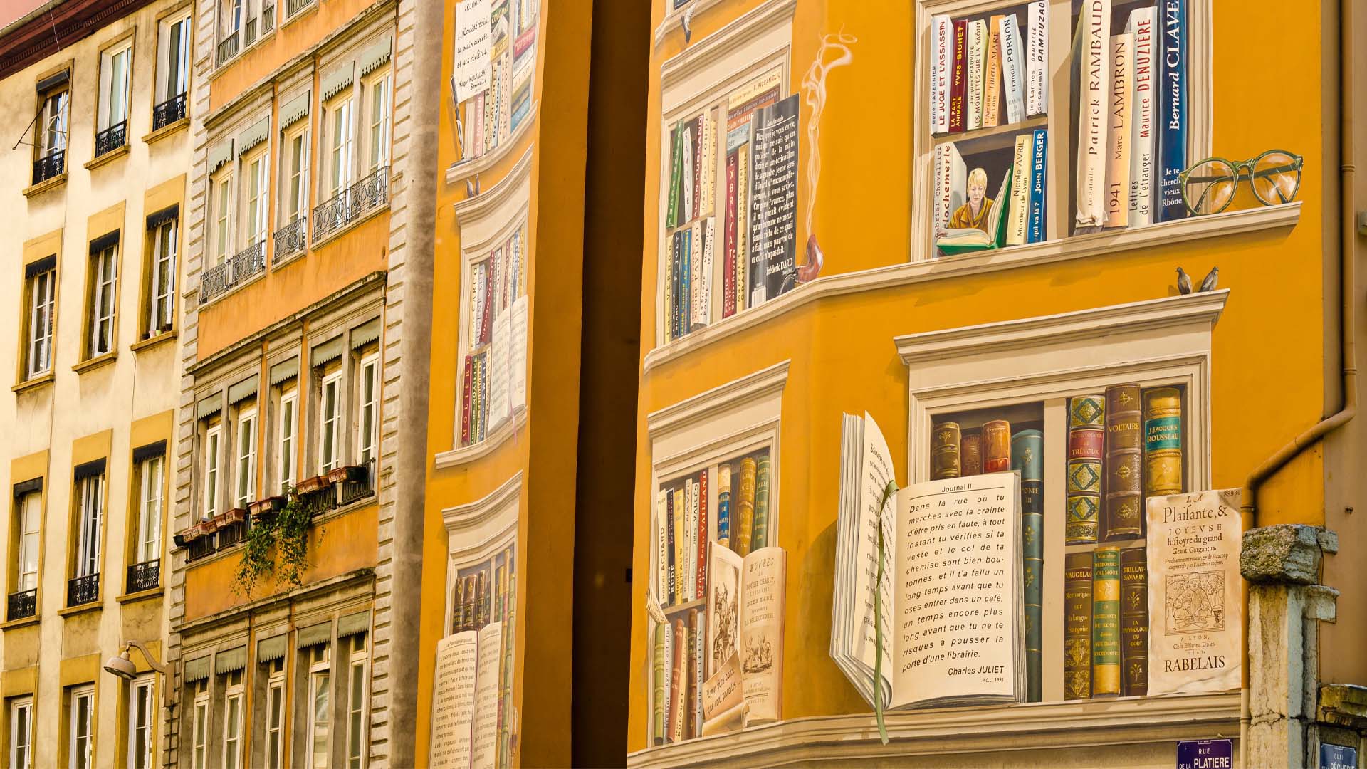 Semaine de la Francophonie Mur peint des écrivains, Lyon, France (© Russ Bishop/Alamy Stock Photo)