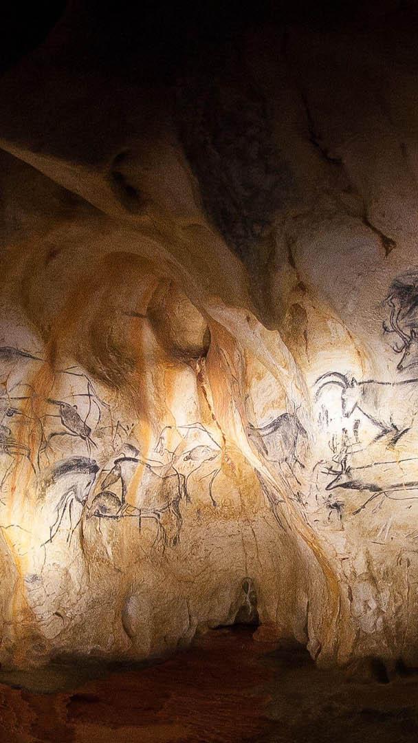 Voyage au cœur du paléolithique Reproductions fresques de la Grotte de Chauvet, Ardèche, France (© Abaca Press/Alamy Stock Photo)