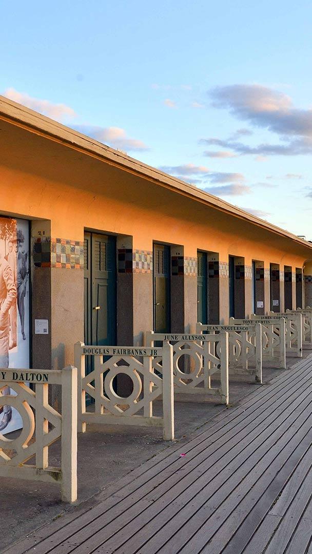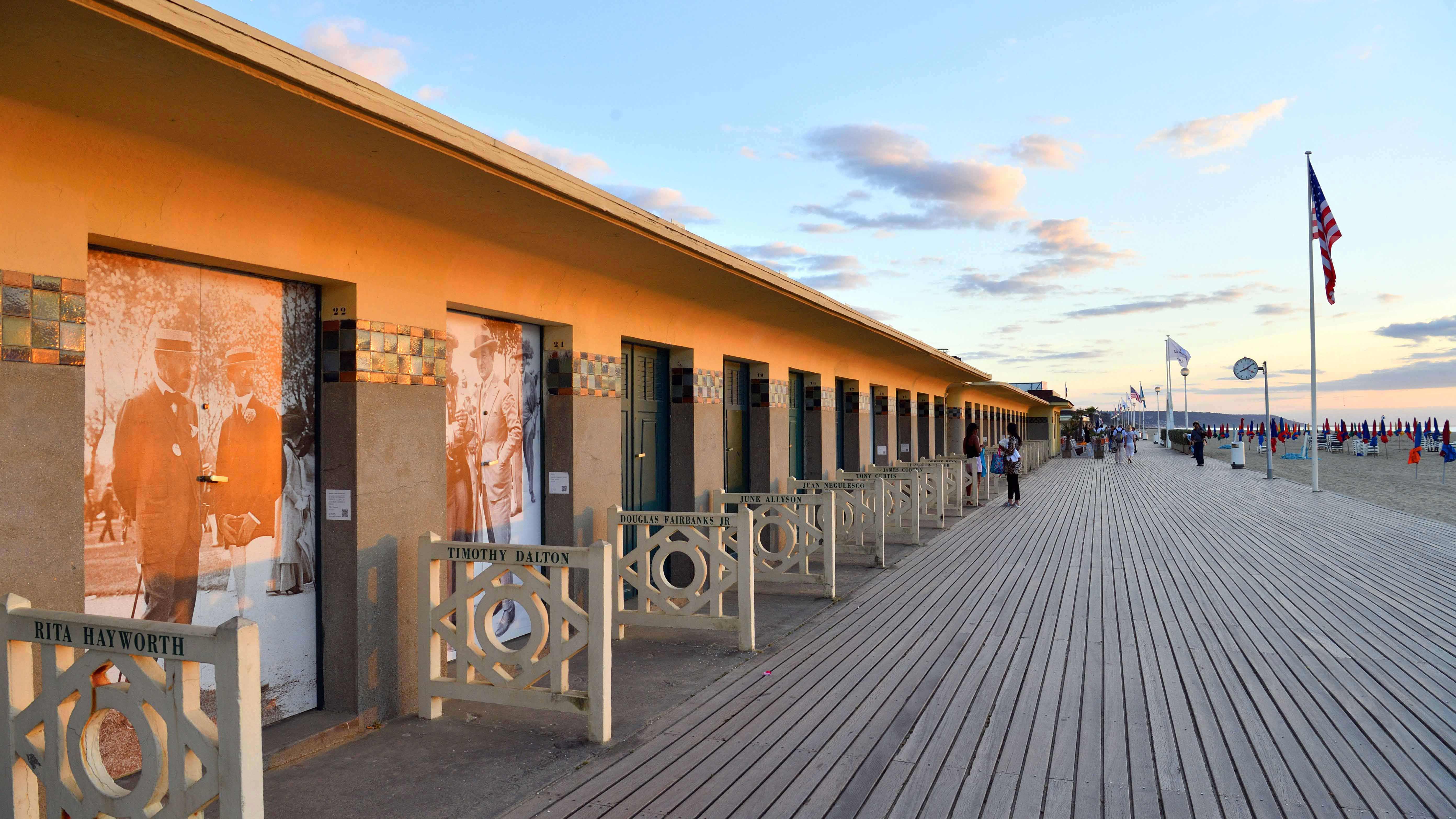 Action ! Les planches de Deauville et les cabines aux noms de personnalités du cinéma américain, Calvados (© Rene Mattes/mauritius images GmbH/Alamy Stock Photo)