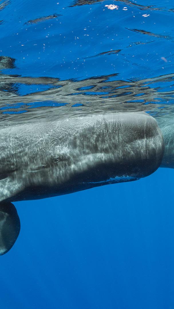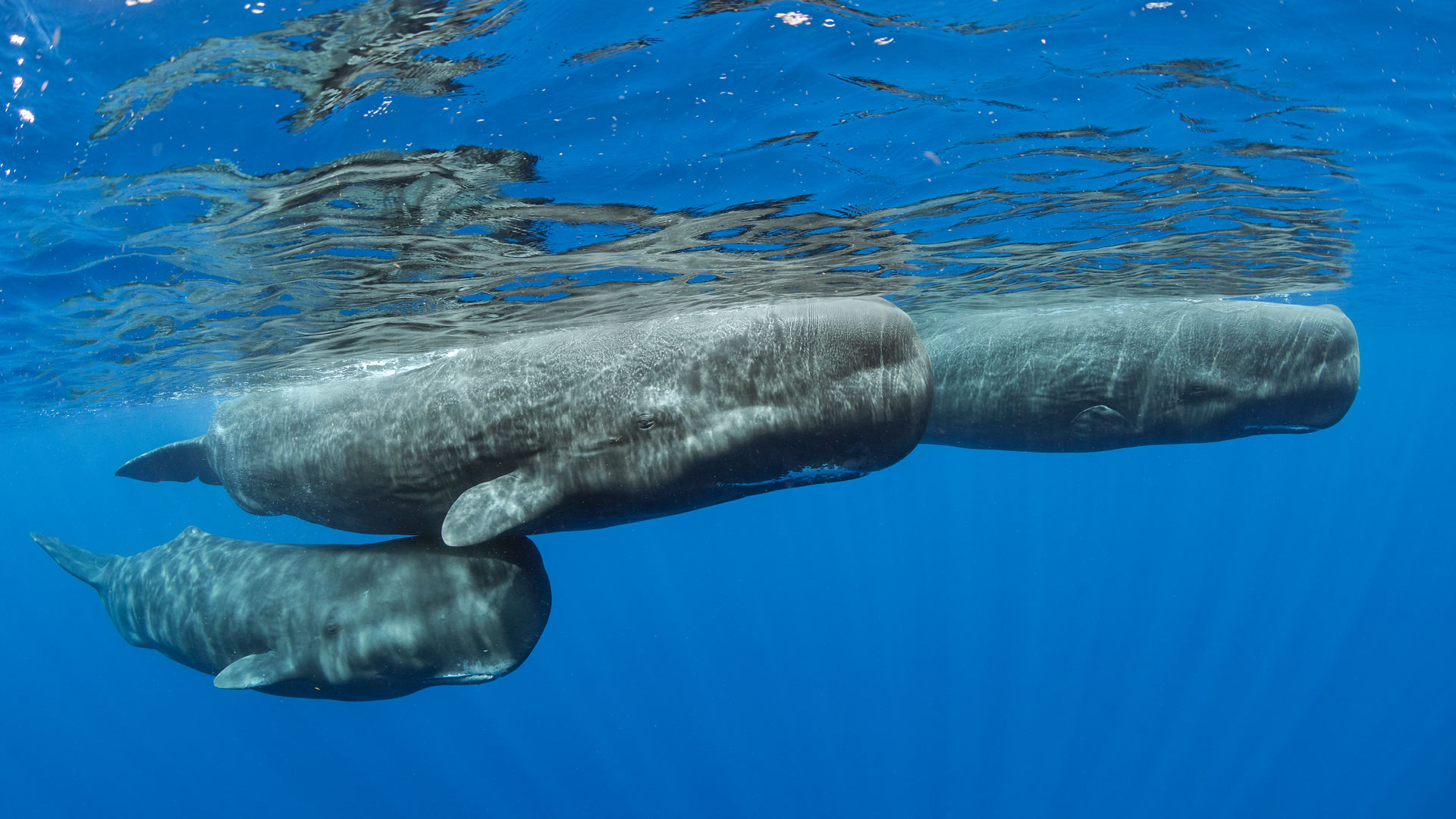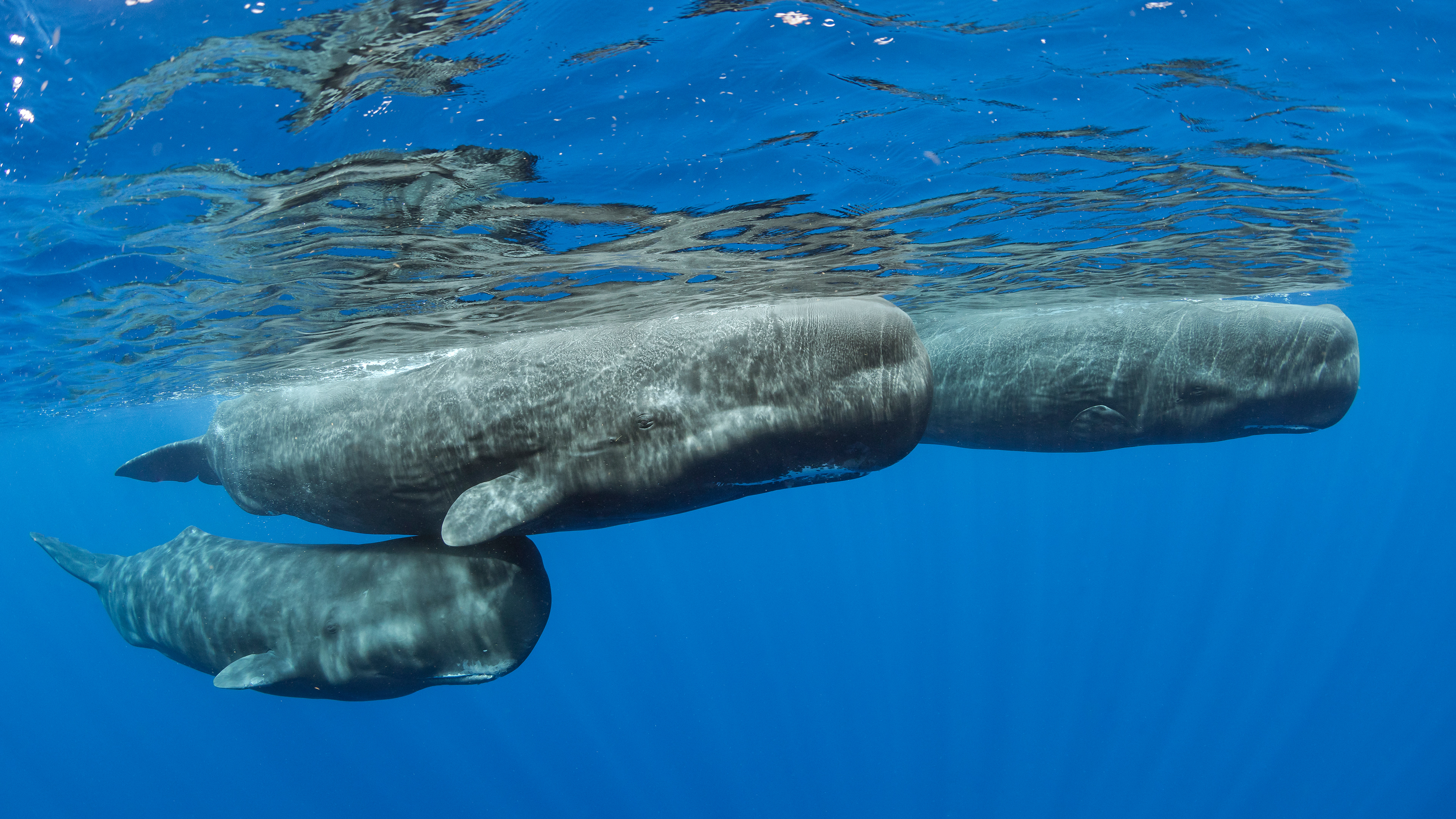 Sperm whale pod surfacing © Franco Banfi/Minden Pictures