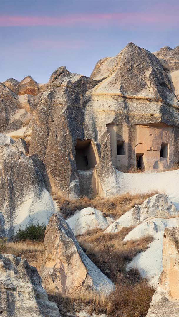 Fairy chimneys and cave dwellings in Cappadocia, Türkiye © Storm Is Me/Shutterstock