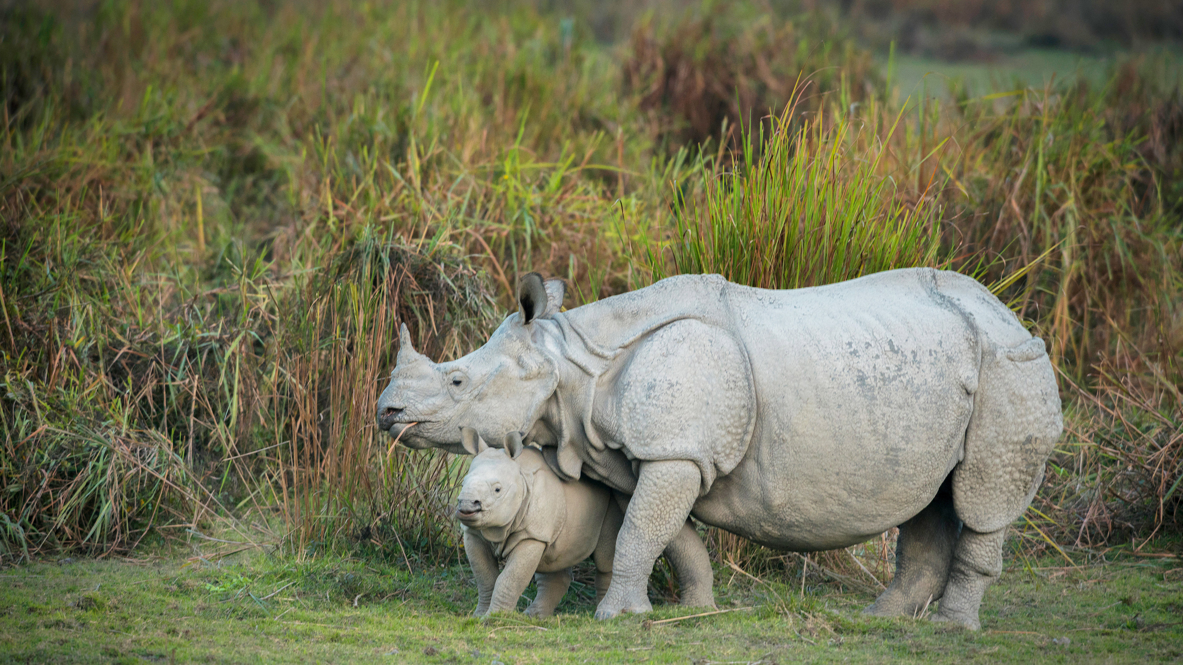 Rhino mother and calf, Kaziranga National Park, Assam © ePhotocorp/Getty Images