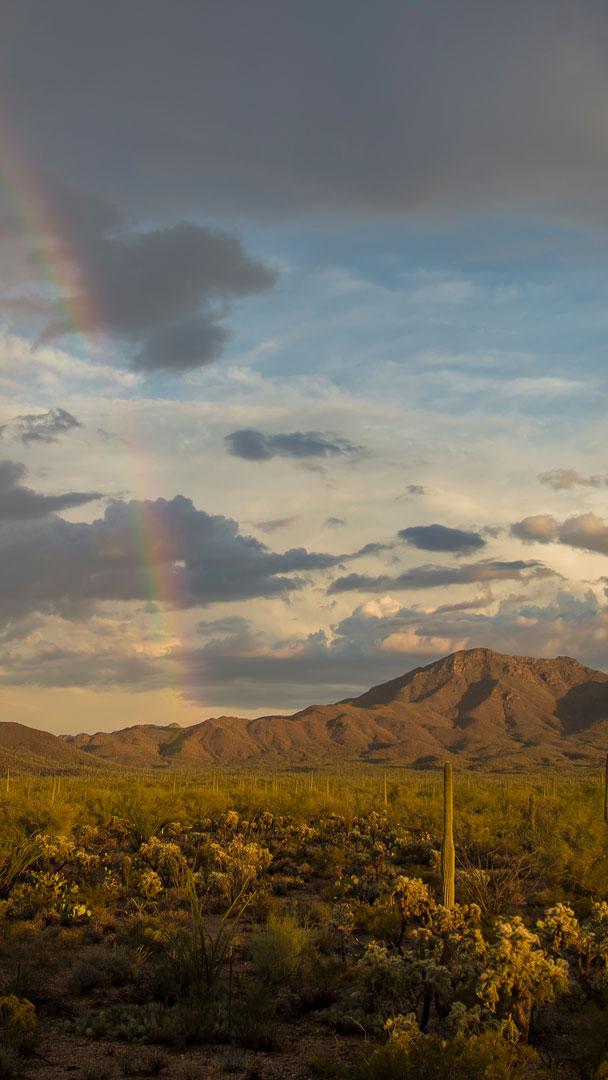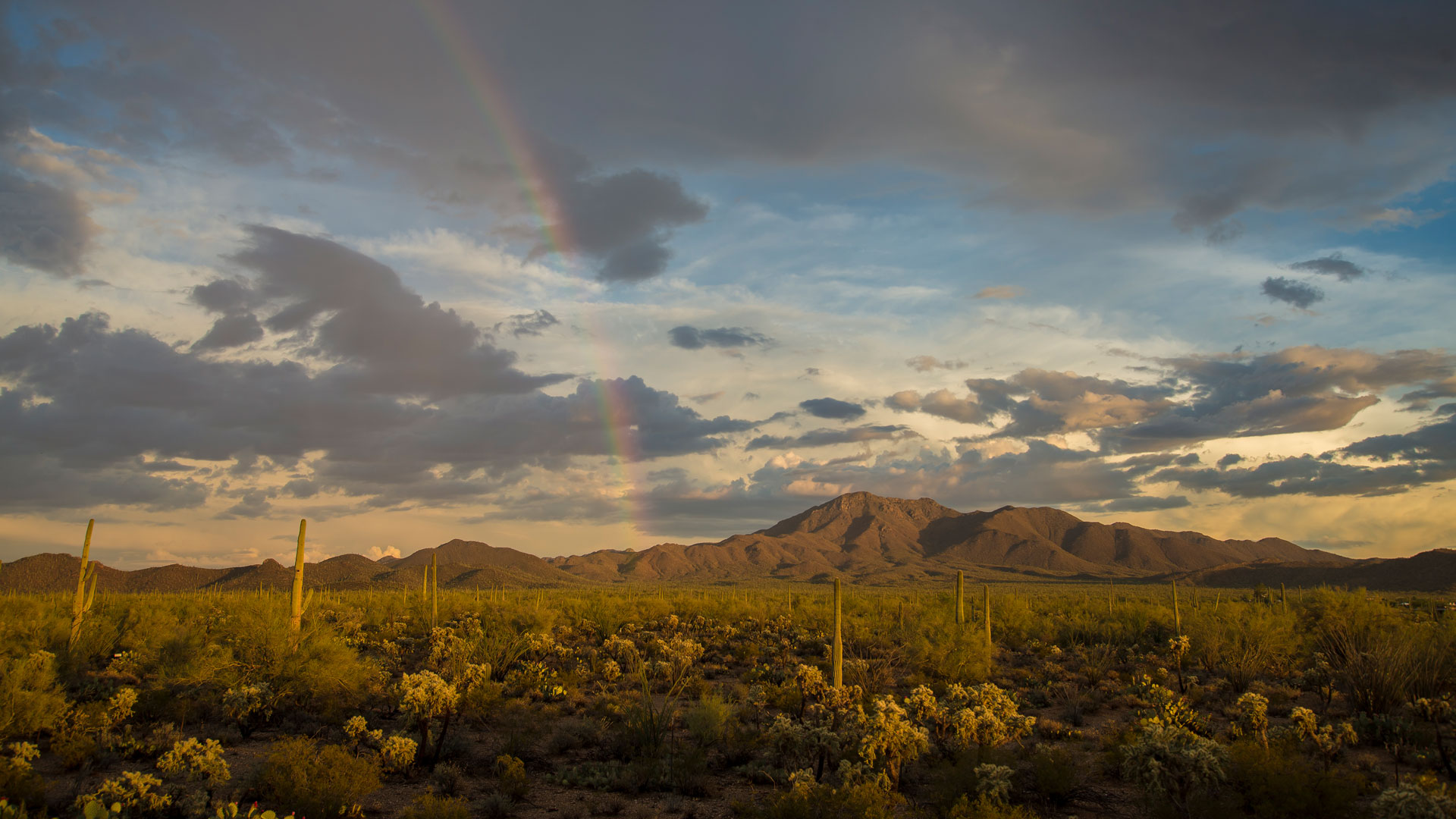 Magia tra le spine? Arcobaleno sul Wasson Peak, Parco Nazionale dei Saguaro, Arizona, USA (© Frank Staub/Getty Images)