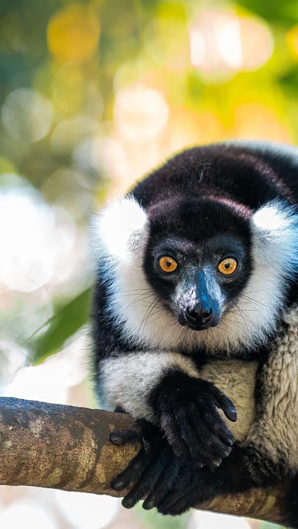 Curioso selvaggio Lemure dal collare bianco e nero, Madagascar (© Cyrielle Beaubois/Getty Images)