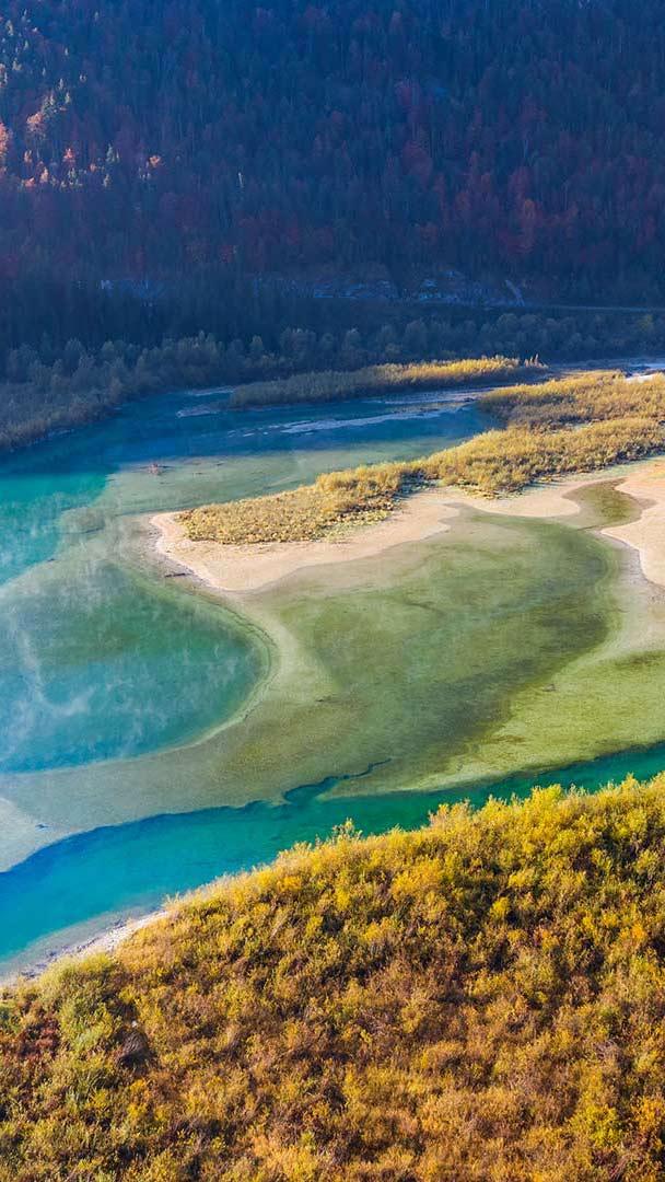 Le acque cristalline di un bacino artificiale Veduta aerea del fiume Isar, nei pressi del comune di Lenggries, in Germania (© Martin Siepmann/Offset/Shutterstock)