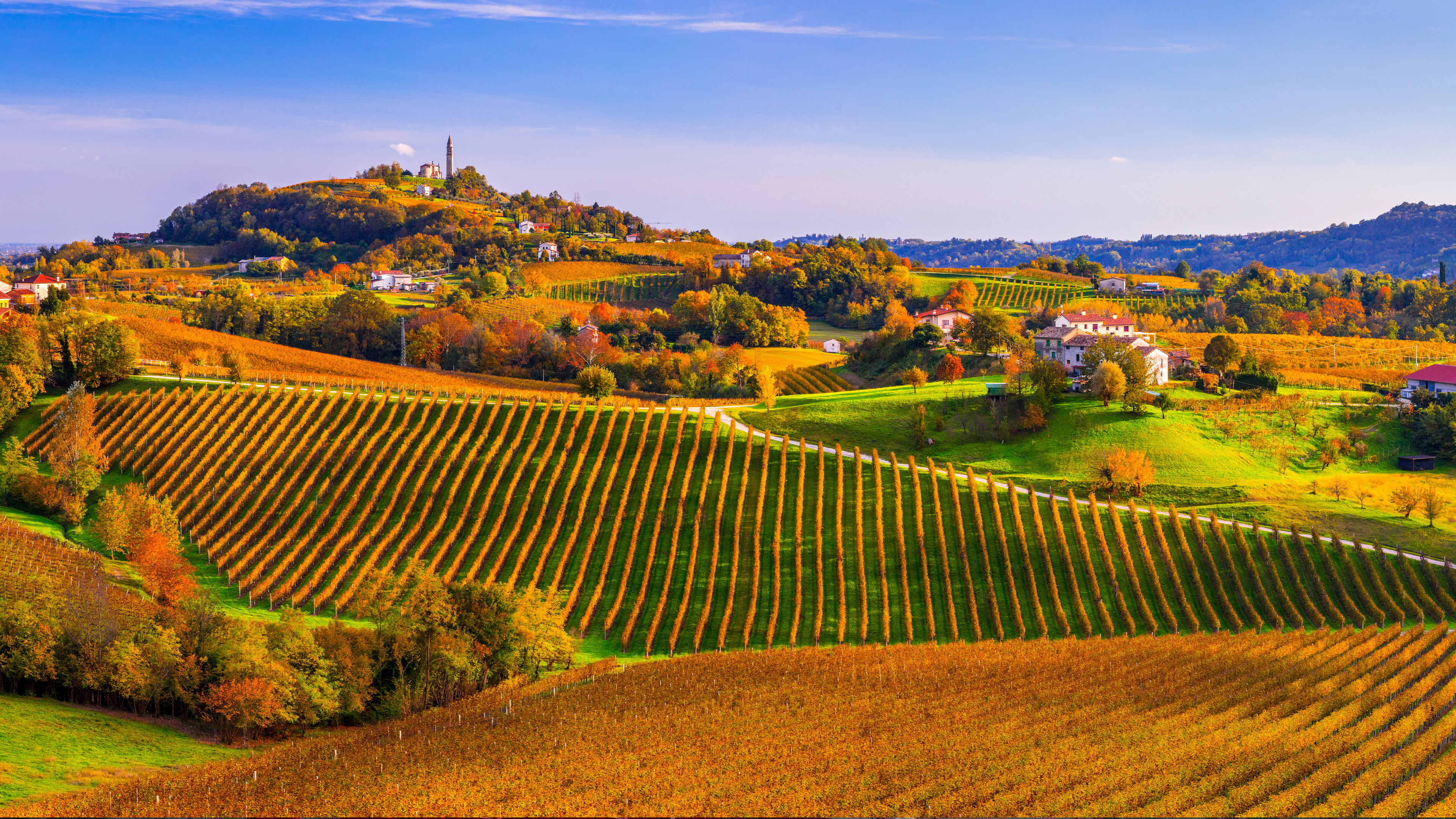 Un calice di vino? Colline del Prosecco di Conegliano e Valdobbiadene, Veneto, Italia (© Olimpio Fantuz/Sime/eStock Photo)