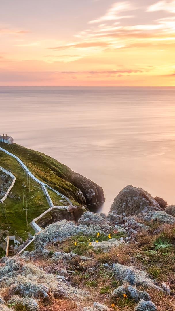 Alte maree e luci brillanti Faro di South Stack al tramonto, Holyhead, Galles, Regno Unito (© mariotlr/Getty Images)