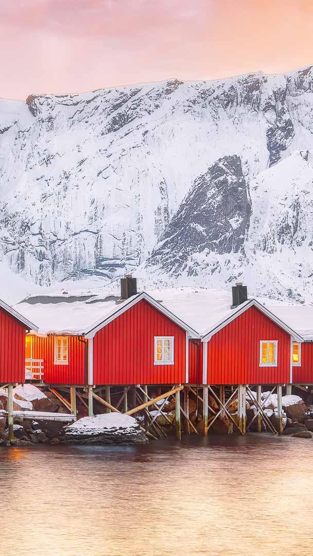 Tra fiordi e capanne Tradizionali casette rosse dei pescatori sulle rive del Reinefjorden, Norvegia (© Pilat666/Getty Images)