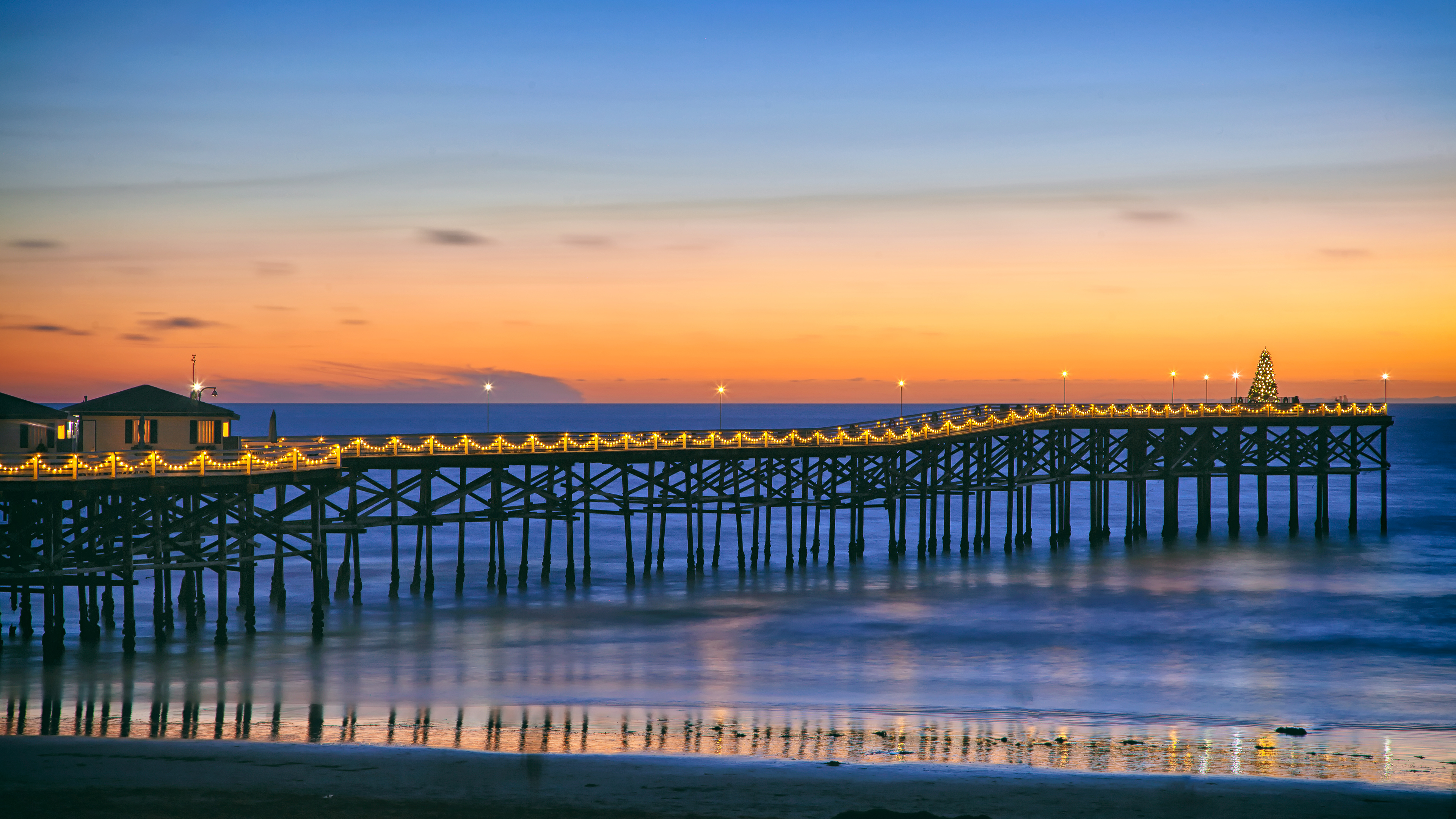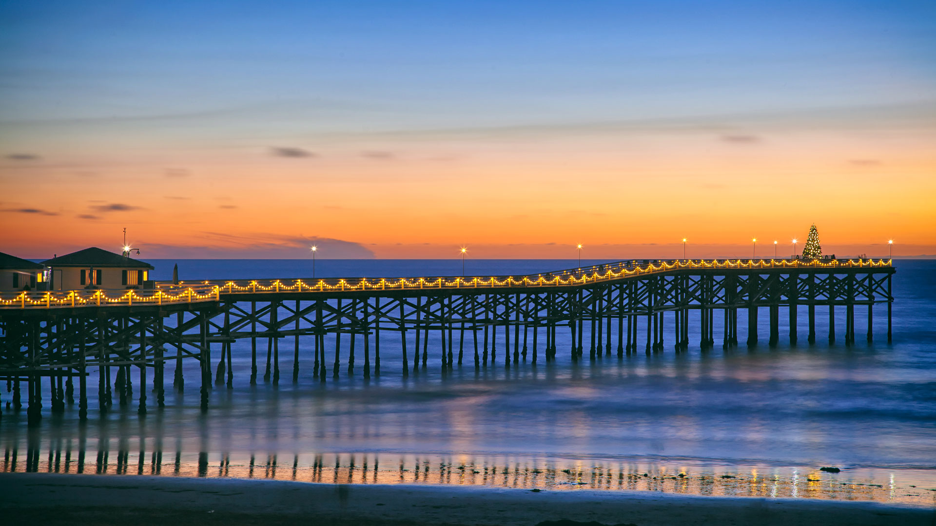 Surf, Sabbia e Santa Claus Albero di Natale al Crystal Pier, Pacific Beach, San Diego, California, USA (© SamAntonioPhotography/Getty Images)