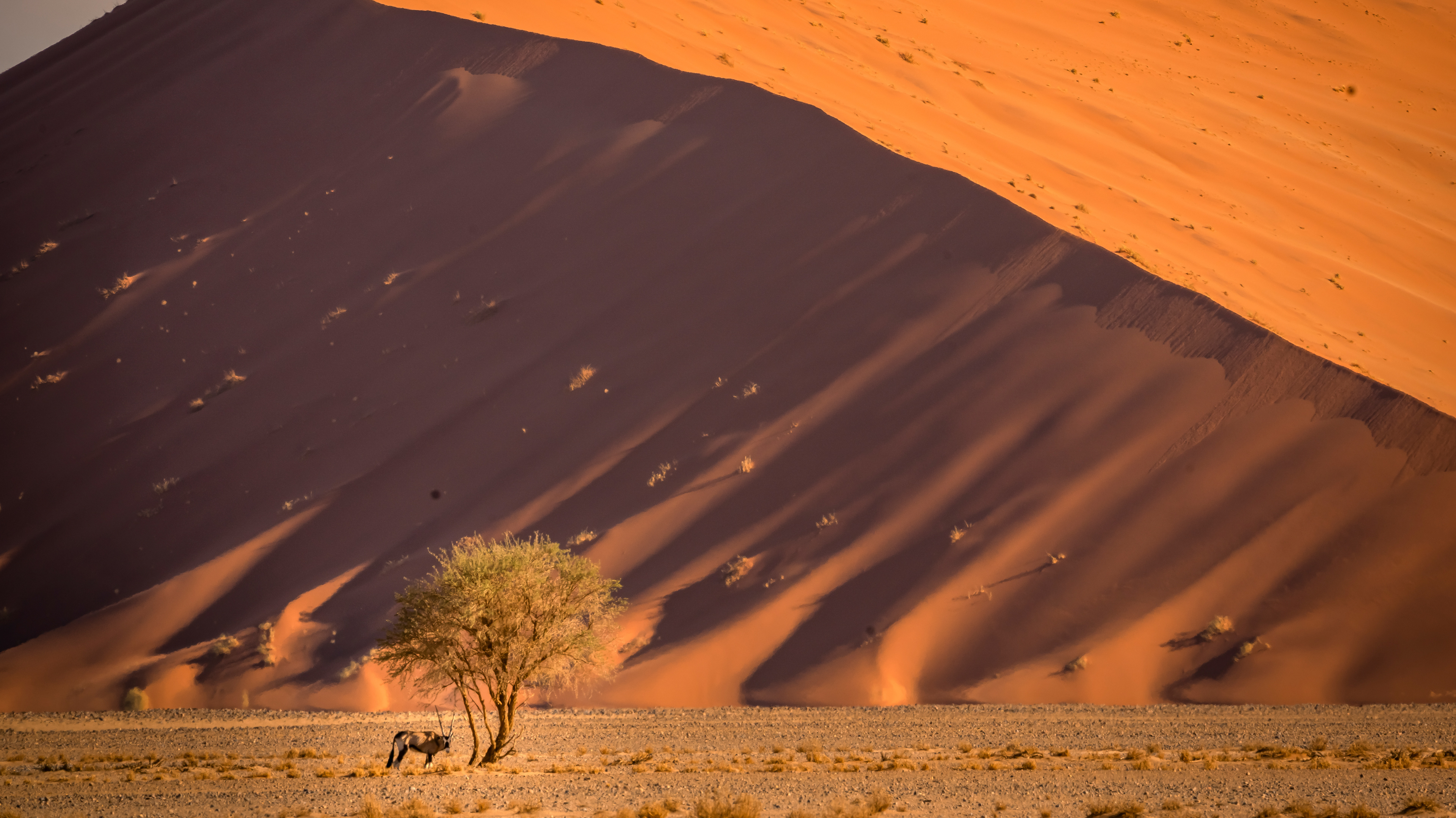 Rossi orizzonti, sabbia e tramonti Dune di sabbia di Sossusvlei, deserto del Namib, Namibia (© Airpano/Amazing Aerial Agency)