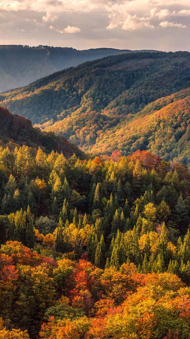 今日 10 月 23 日は二十四節気の「霜降」。朝晩の冷え込みが一層厳しくなり、地面や草木に霜が降りる時期です。木々の紅葉が進む時期でもあり、ここ青森県青森市にある八甲田山は、例年のこの時期、山頂付近が見頃を終え、山麓付近が紅く色づいていきます…