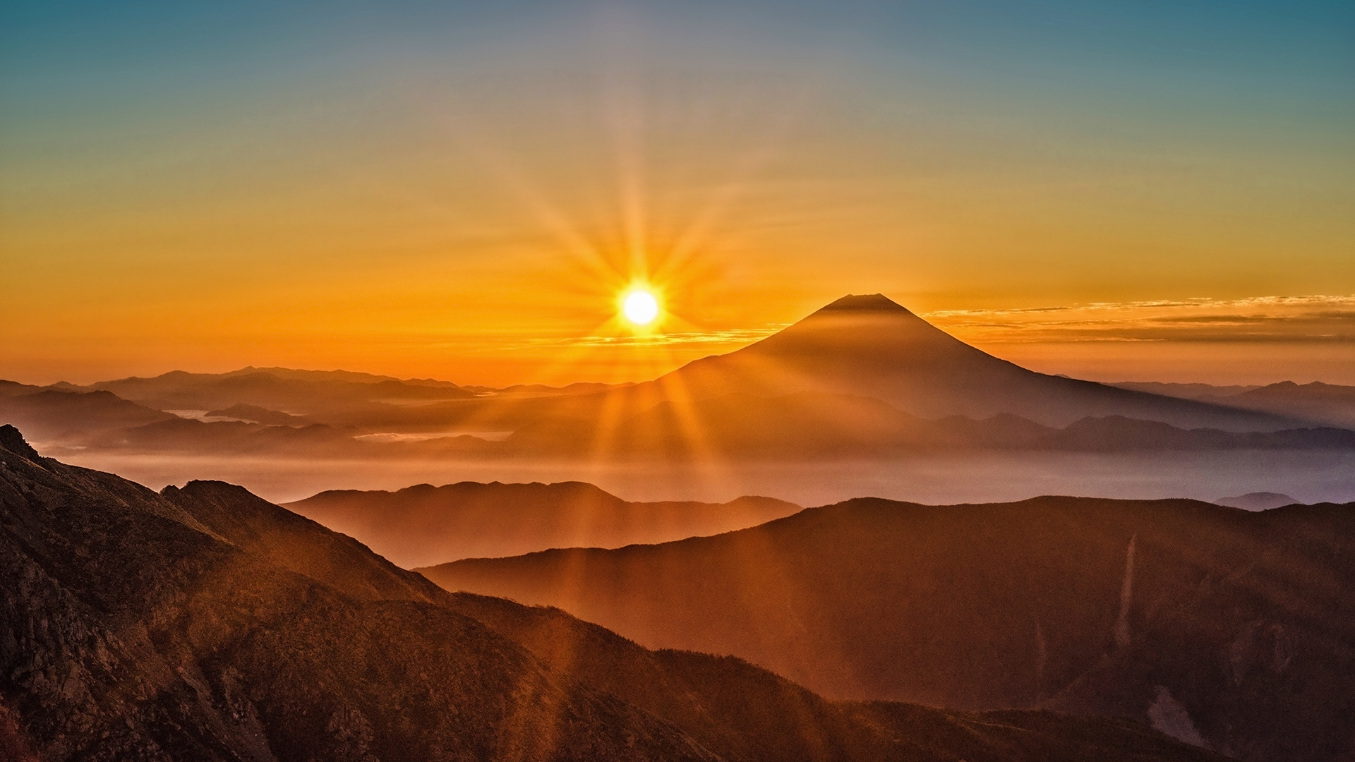 明けましておめでとうございます 富士山と日の出 (© Carlos Lorenzo/Shutterstock)
