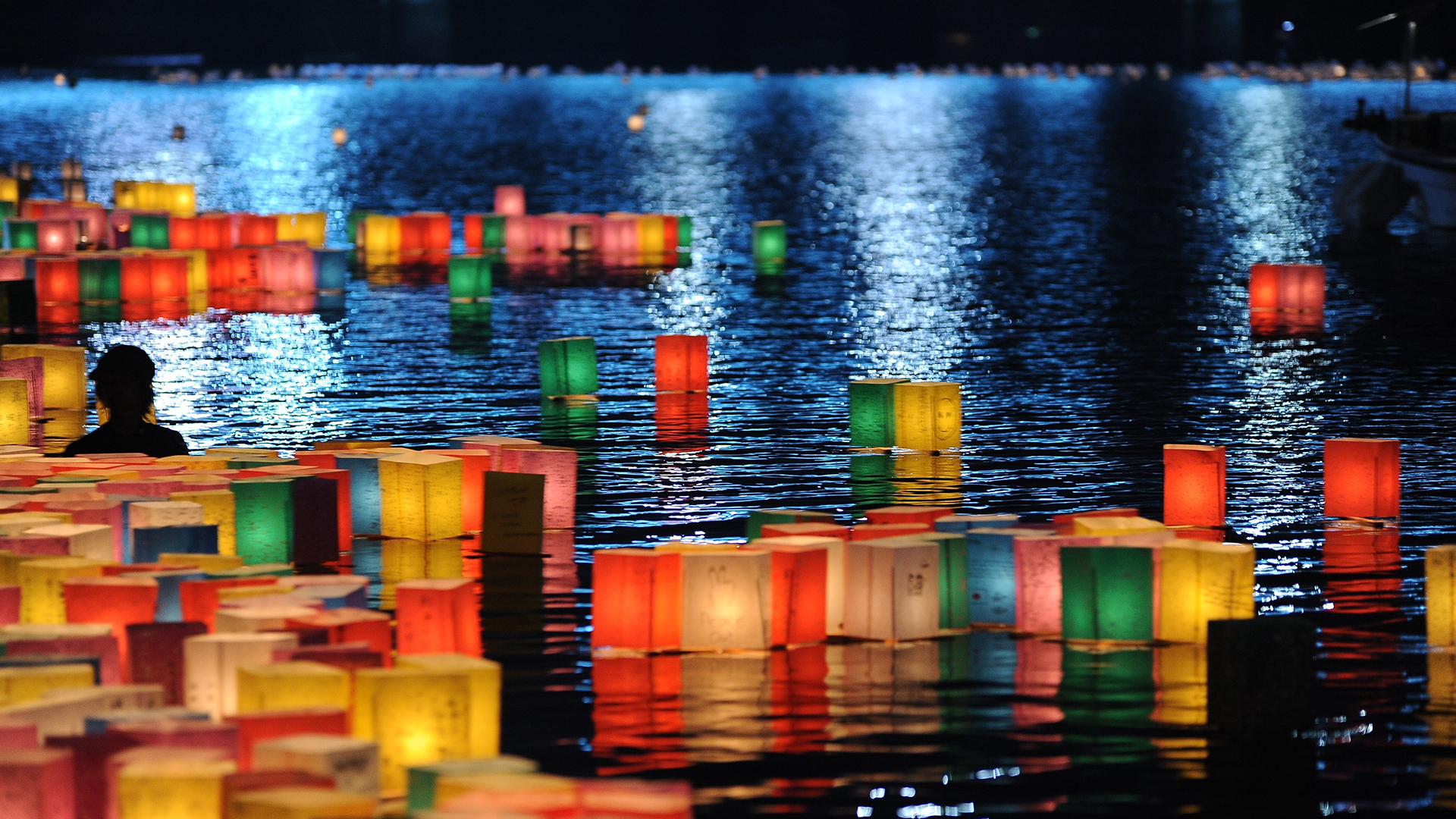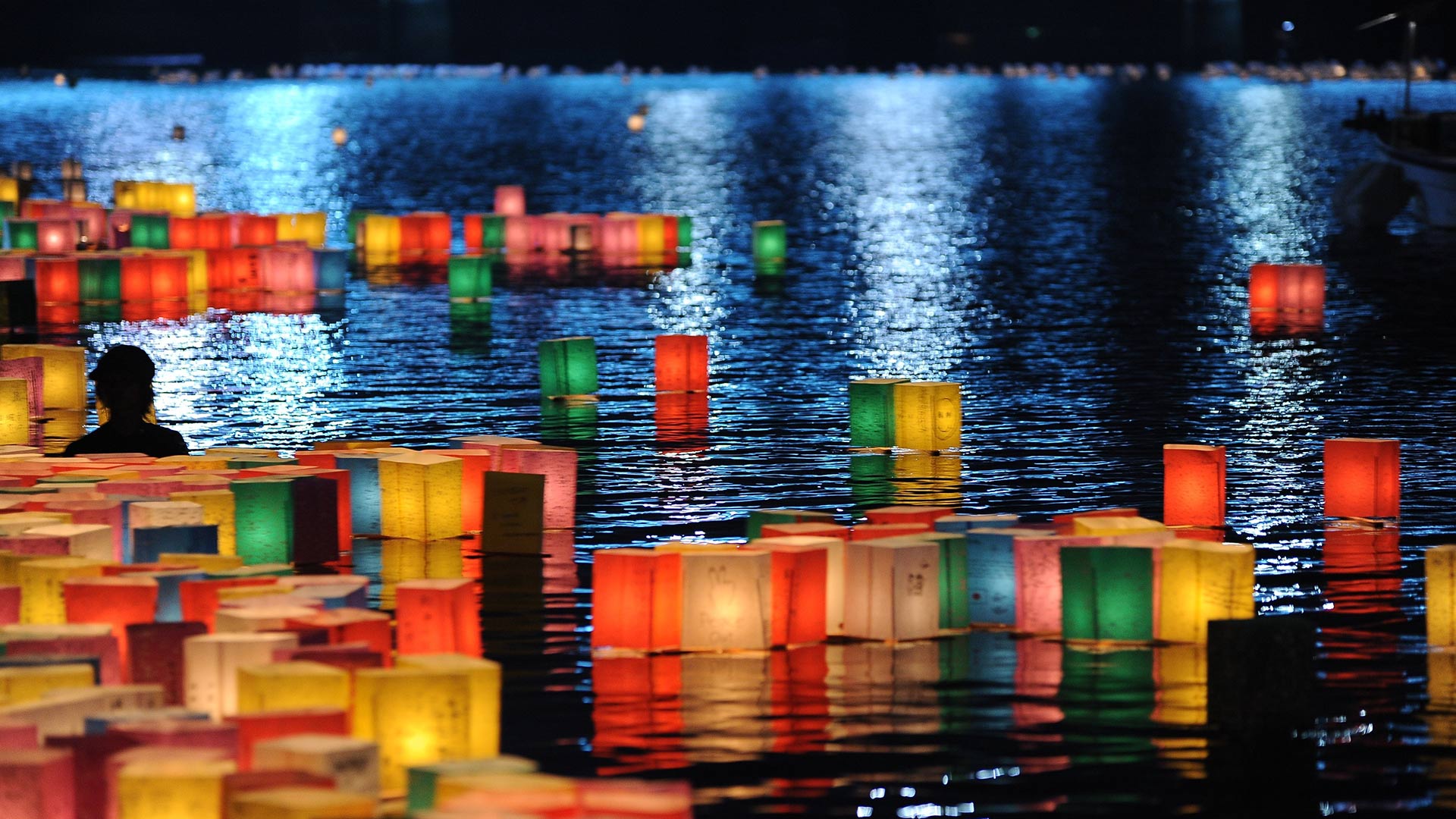 今日は広島平和記念日 原爆ドーム前元安川のとうろう流し, 広島県 広島市 (© Anadolu Agency/Getty Images)