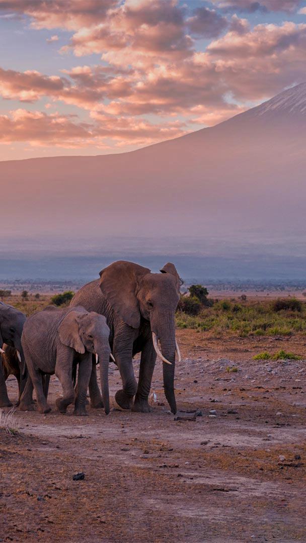 Trunks packed for the road Elephants near Mount Kilimanjaro, Amboseli National Park, Kenya (© Diana Robinson Photography/Getty Images)