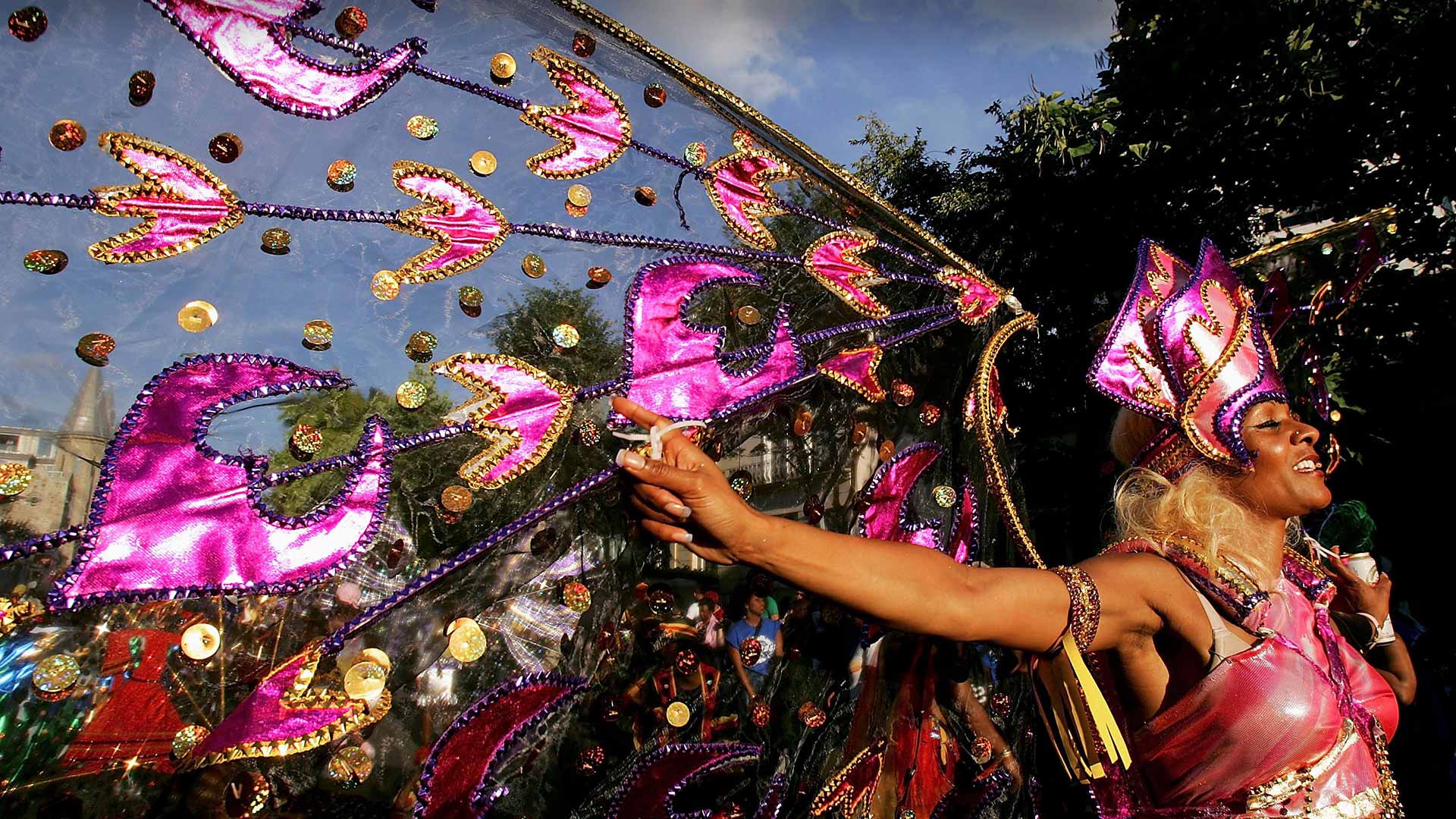 It’s party time Mas performers in costume perform at the Notting Hill Carnival, London (© Daniel Berehulak/Getty Images)