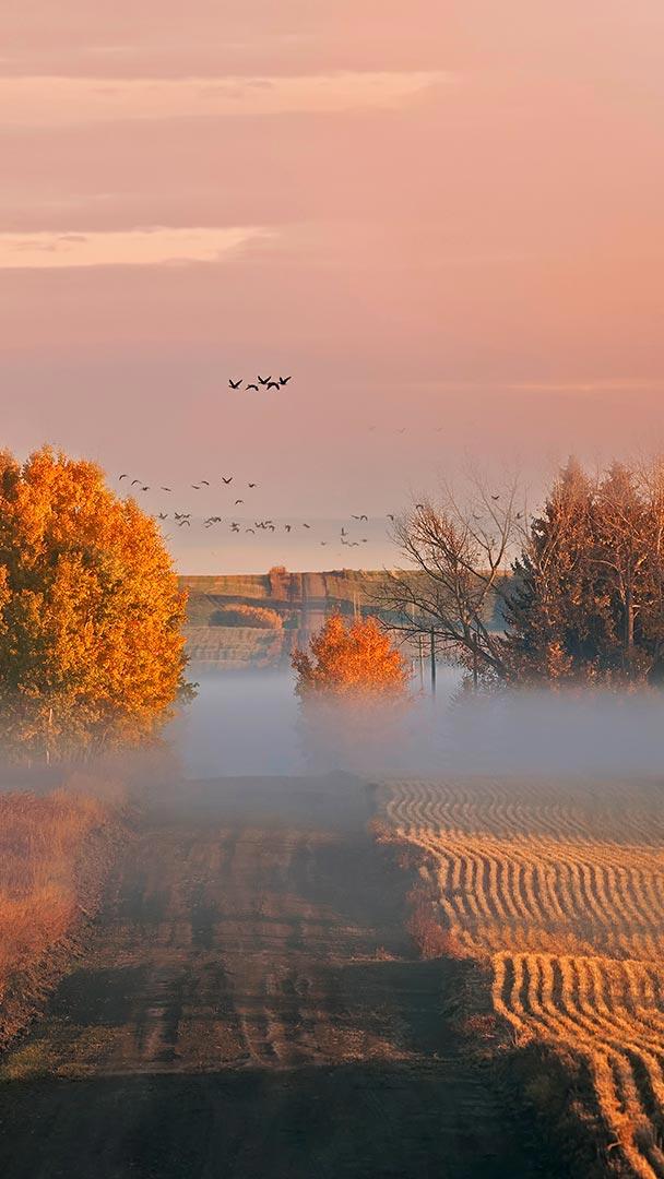 We"re looking at a fall sunrise in Alberta, Canada, in honor (or should we say "honour") of Canadian Thanksgiving. The holiday is officially celebrated on the second Monday in October, though many families gather the previous day. The first known Thanksgiving celebration in Canada was organized by English explorer Martin Frobisher in 1578 when he reached Newfoundland. Years later, American loyalists who were faithful to England during the Revolutionary War moved to Canada and brought traditions with them, such as eating turkey on Thanksgiving. As in the US, a Canadian Thanksgiving table is likely to have a horn-shaped cornucopia filled with festive-looking fruits and grains. The menu often includes turkey, but also regional dishes like salmon and Nanaimo bars—a layered chocolate dessert.