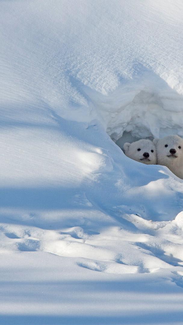 This is the time of year that polar bears emerge from their winter dens. In today"s photo, these adorable cubs are peeking out for the first time in their young lives. Polar bears don"t technically hibernate, but in fall, a pregnant female polar bear will dig a maternity den in the snow (although in some areas it"ll be under the peat soil). While in her small den, the bear enters a dormant state, sleeping nearly all the time, until she gives birth, usually between November and February. Then in spring she"ll dig herself out and emerge with her recently arrived cubs. Polar bear cubs stay with their mother for about two years as they learn to survive in the Arctic.