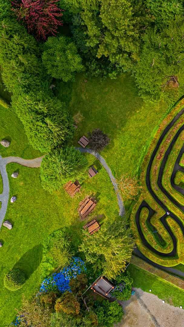 Beannachtaí ó Greenan Maze in Ireland! (That first part is "Greetings from" in traditional Irish.) This family farm in Greenan, a small village in the countryside of County Wicklow, has a hedge maze and a meditative labyrinth path, both in the "celtic maze" style. Celtic mazes are a common artistic motif in artifacts from ancient Celtic settlements. Historians suggest the Celtic maze was linked to spiritual practices, often associated with the journey of the dead into the afterlife. And in modern life, they can be an inspiration for creative hedge mazes. Are you rethinking your backyard landscaping, or is that just us?